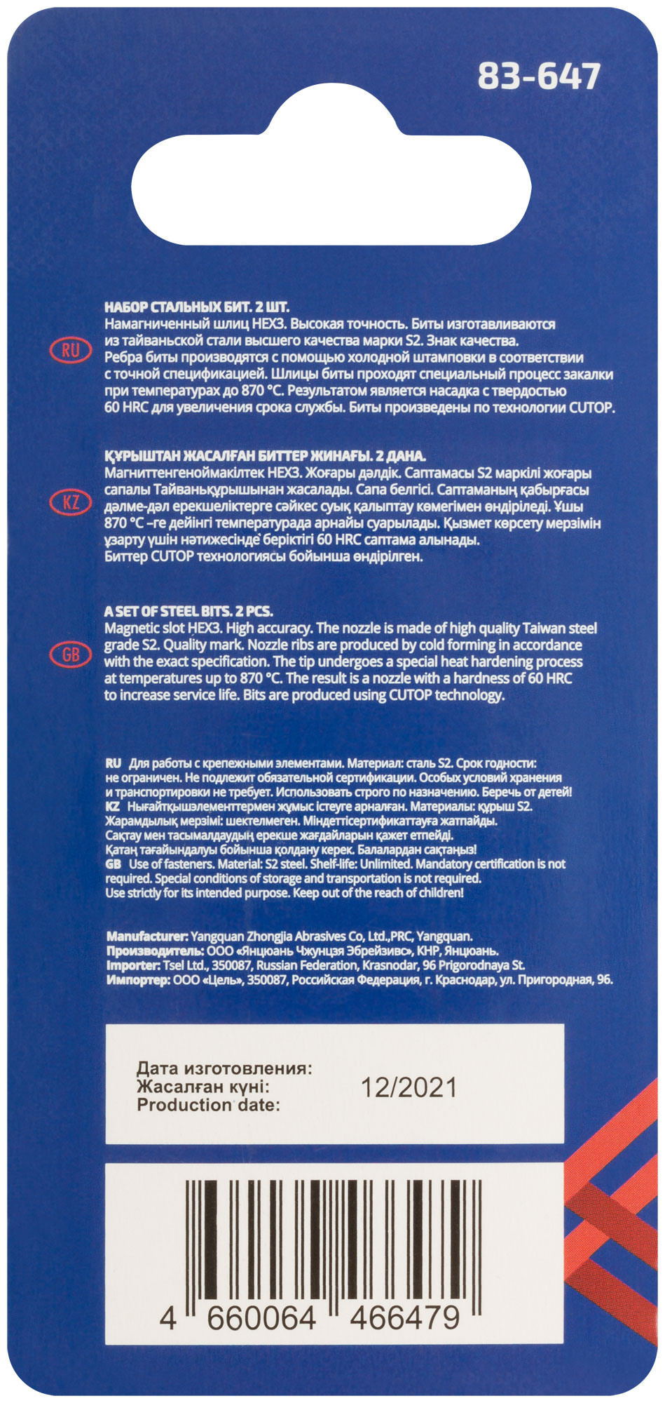 Биты стальные, 2 шт., CUTOP Profi, HEX3, 50 мм