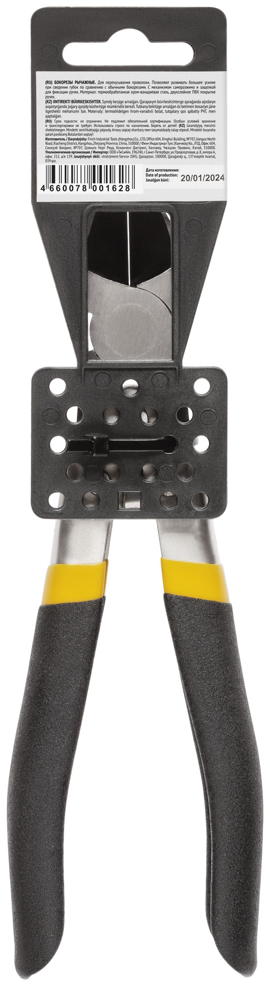 БОКОРЕЗЫ. С рычажным механизмом для увеличения усилия на сведение губок, с механизмом саморазжима и защелкой для фиксации ручек. Материал: шлифованная хром-ванадиевая сталь, двухслойные ПВХ антискользящие ручки. Упаковка: пластиковый подвес.