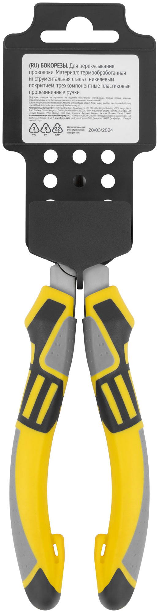 Материал: инструментальная сталь с никелевым антикоррозийным покрытием, трехкомпонентные пластиковые прорезиненные ручки. Упаковка: пластиковый подвес.