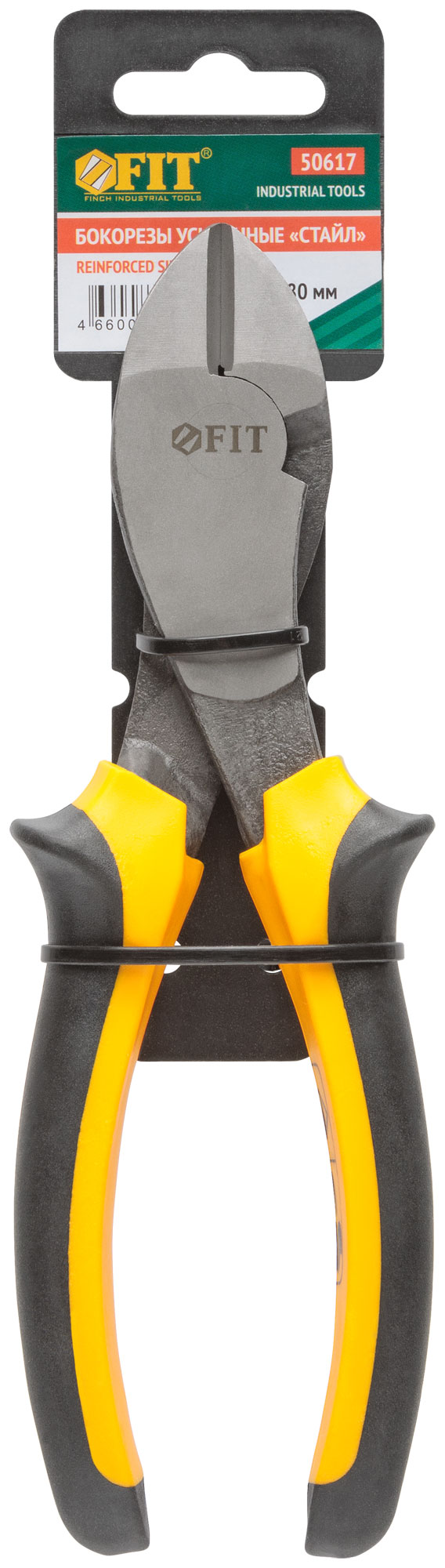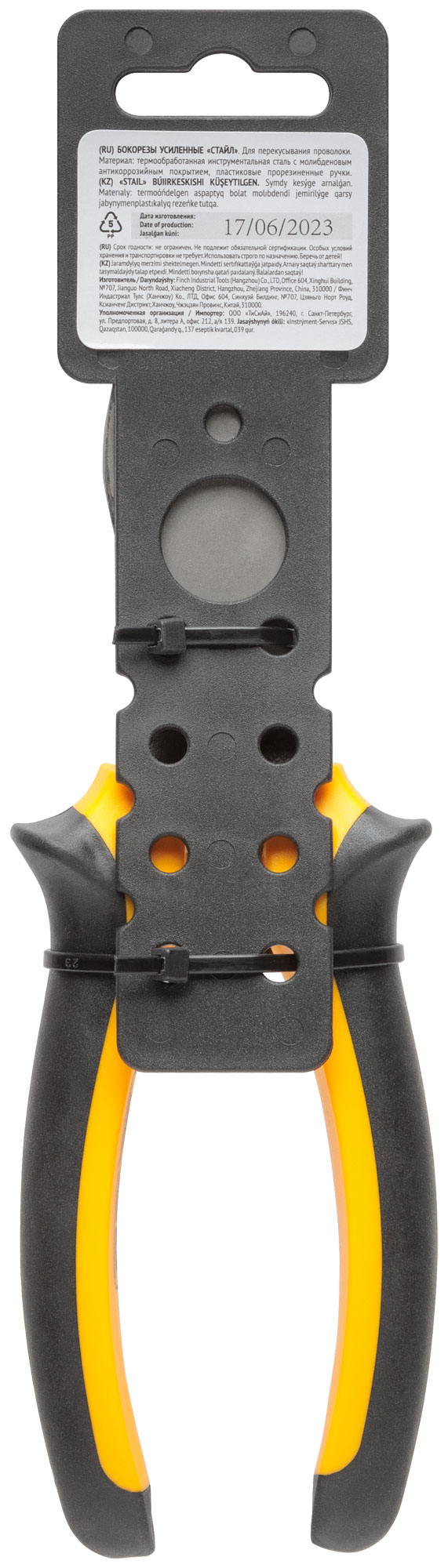 Бокорезы усиленные. Материал: усиленная инструментальная сталь, молибденовое антикоррозийное покрытие, мягкие прорезиненные ручки. Упаковка: пластиковый подвес.