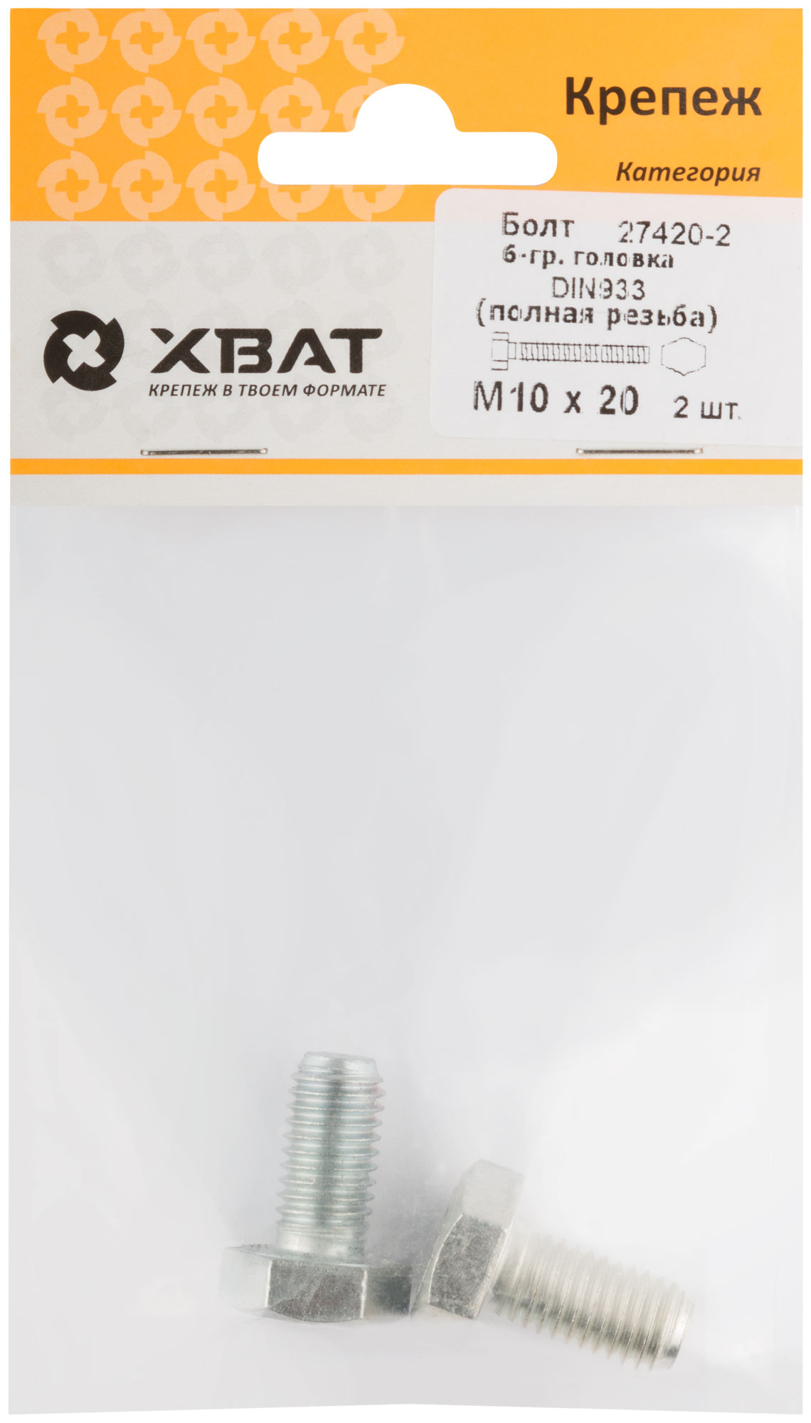 Болт 6-гранная головка (полная резьба) DIN933 М10 х 20 (фасовка 2 шт.)