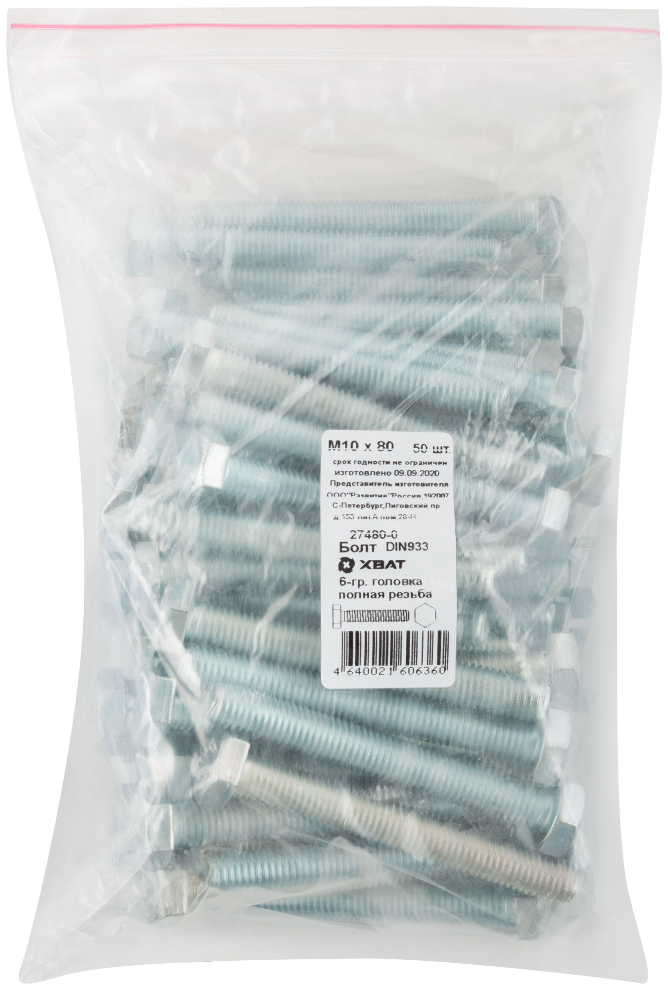 Болт 6-гранная головка (полная резьба) DIN933 М10 х 80 50 шт. Фасовка
