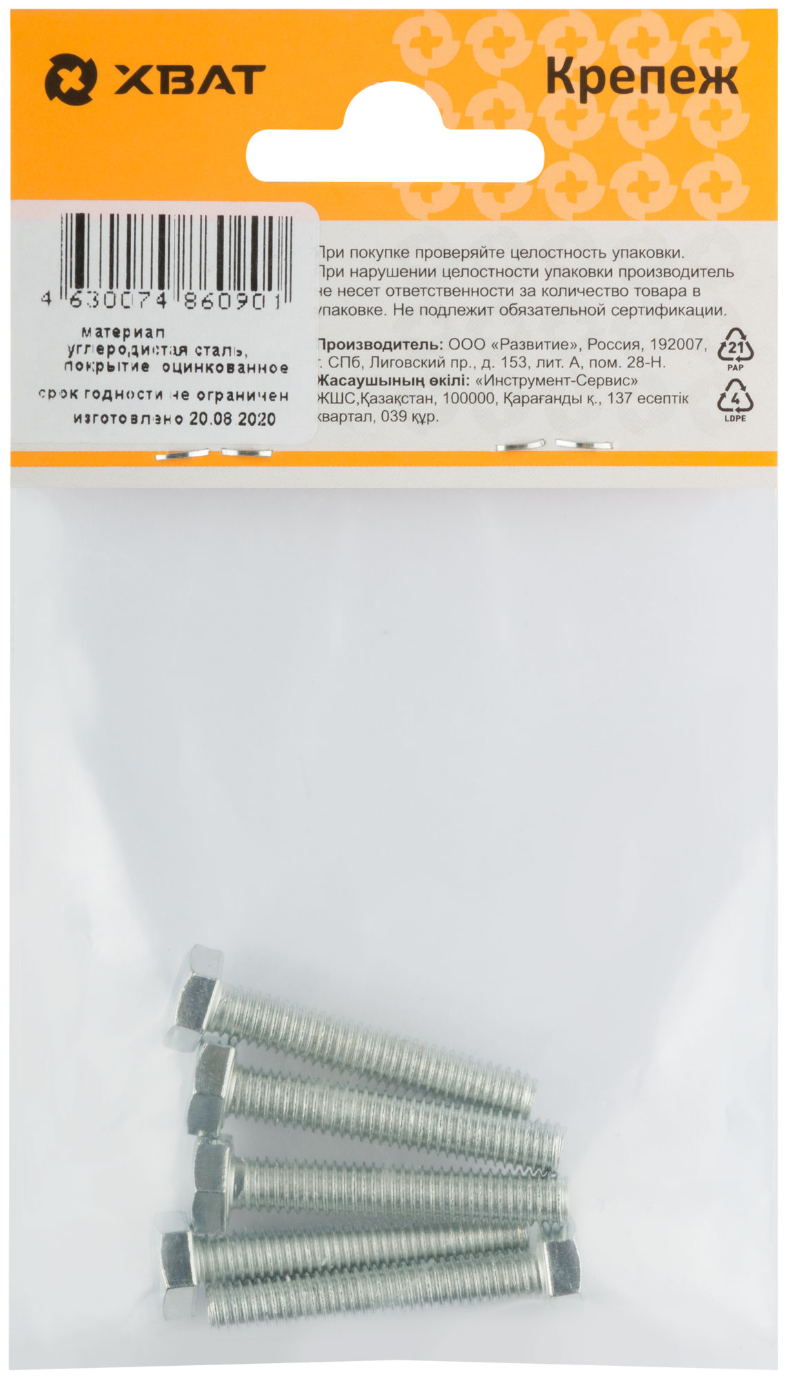 Болт изготовлен из конструкционной оцинкованной стали. Класс прочности 5.8. Рекомендуются для крепления и соединения узлов и деталей в машиностроении, строительстве. Позволяет быстро и качественно произвести монтаж.
