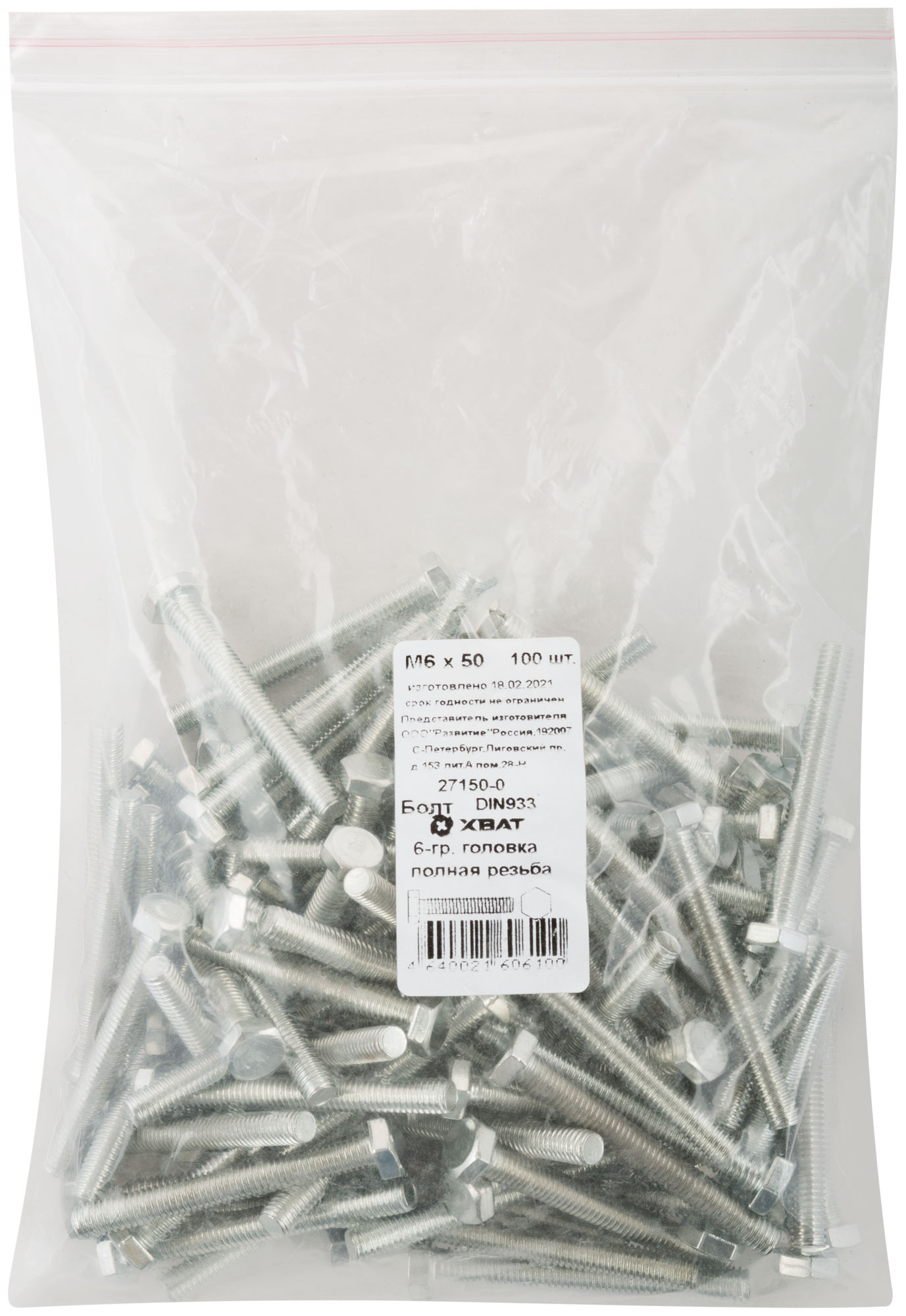 Болт 6-гранная головка (полная резьба) DIN933 М6 х 50 100 шт. Фасовка