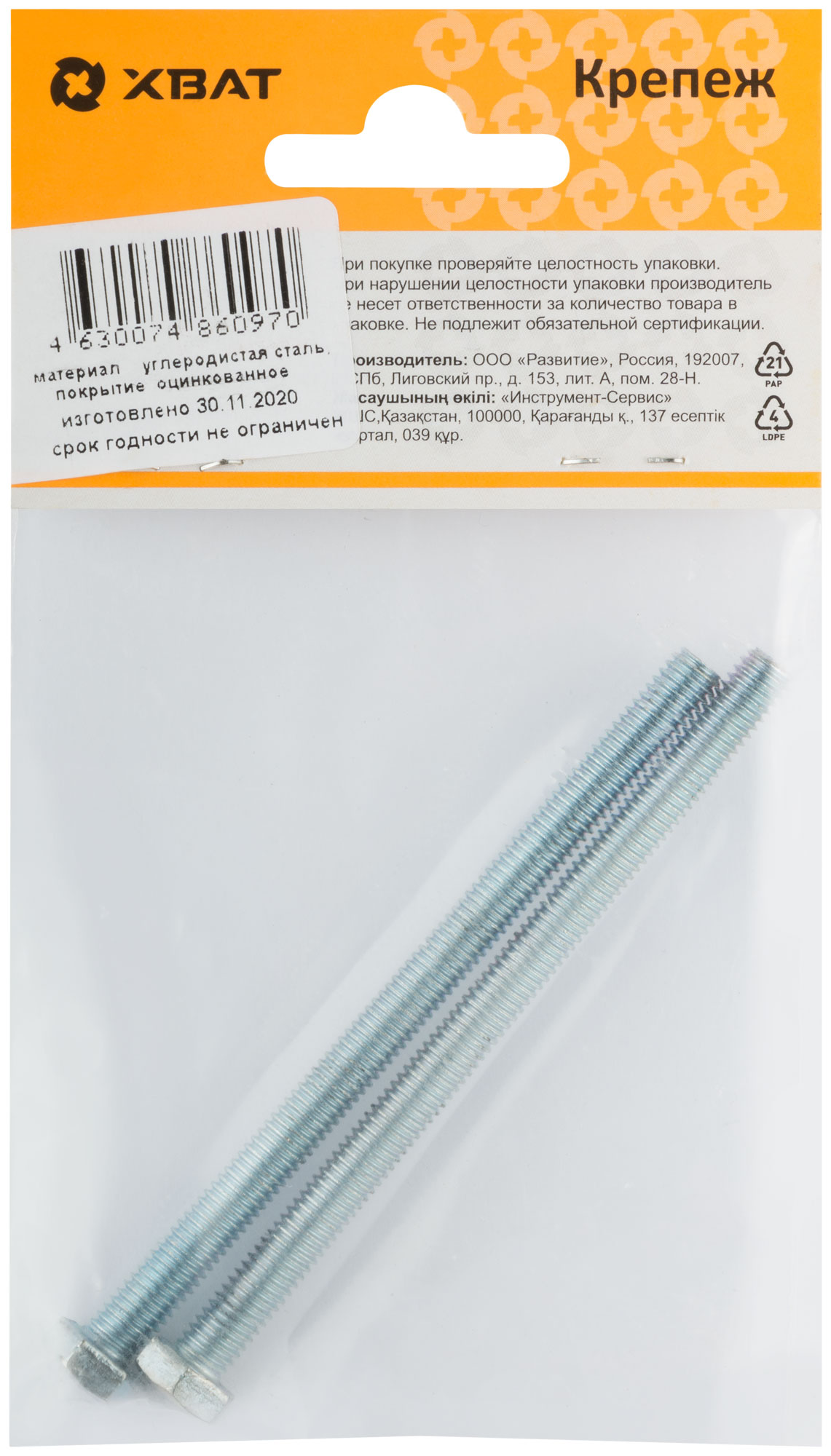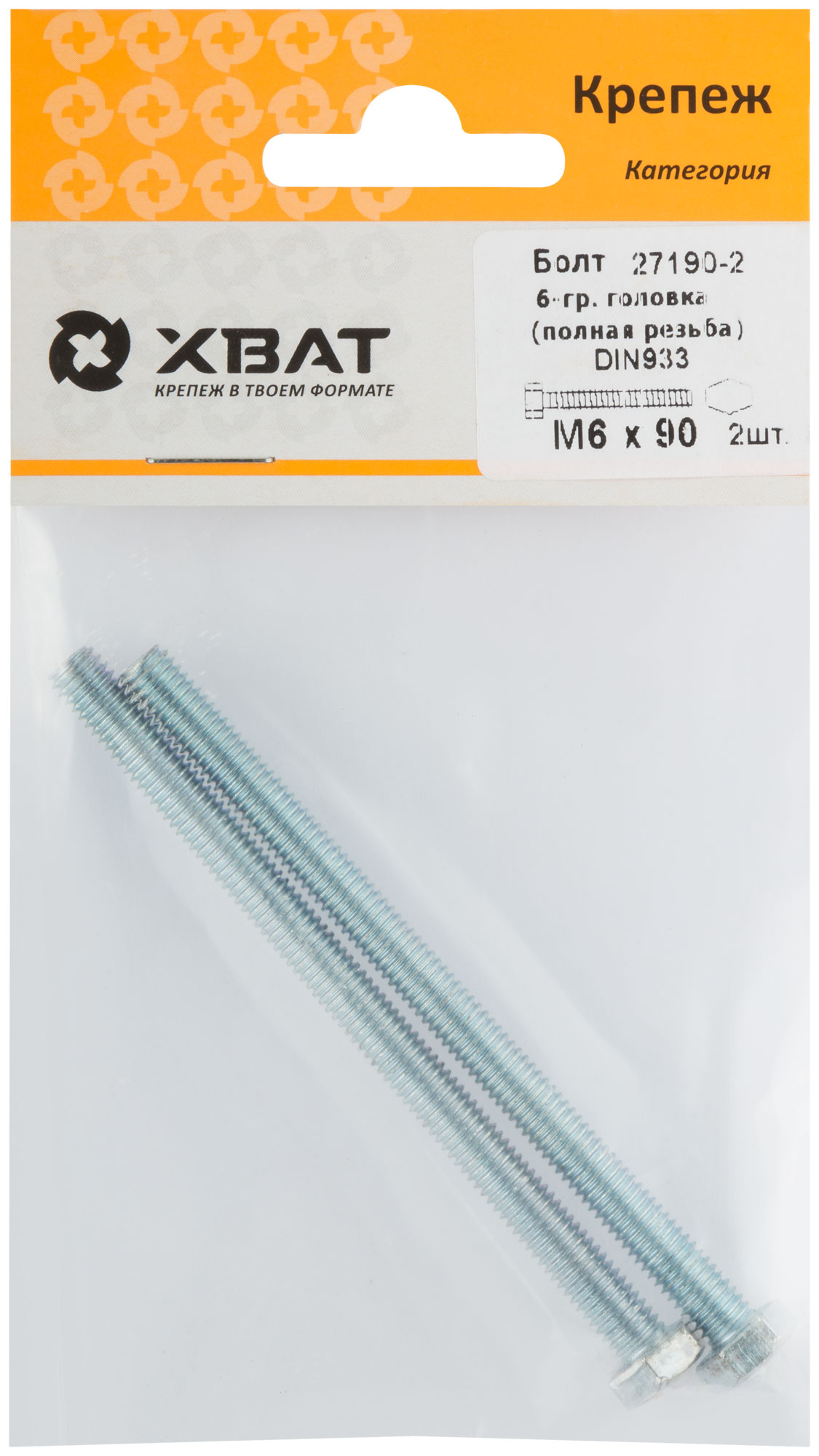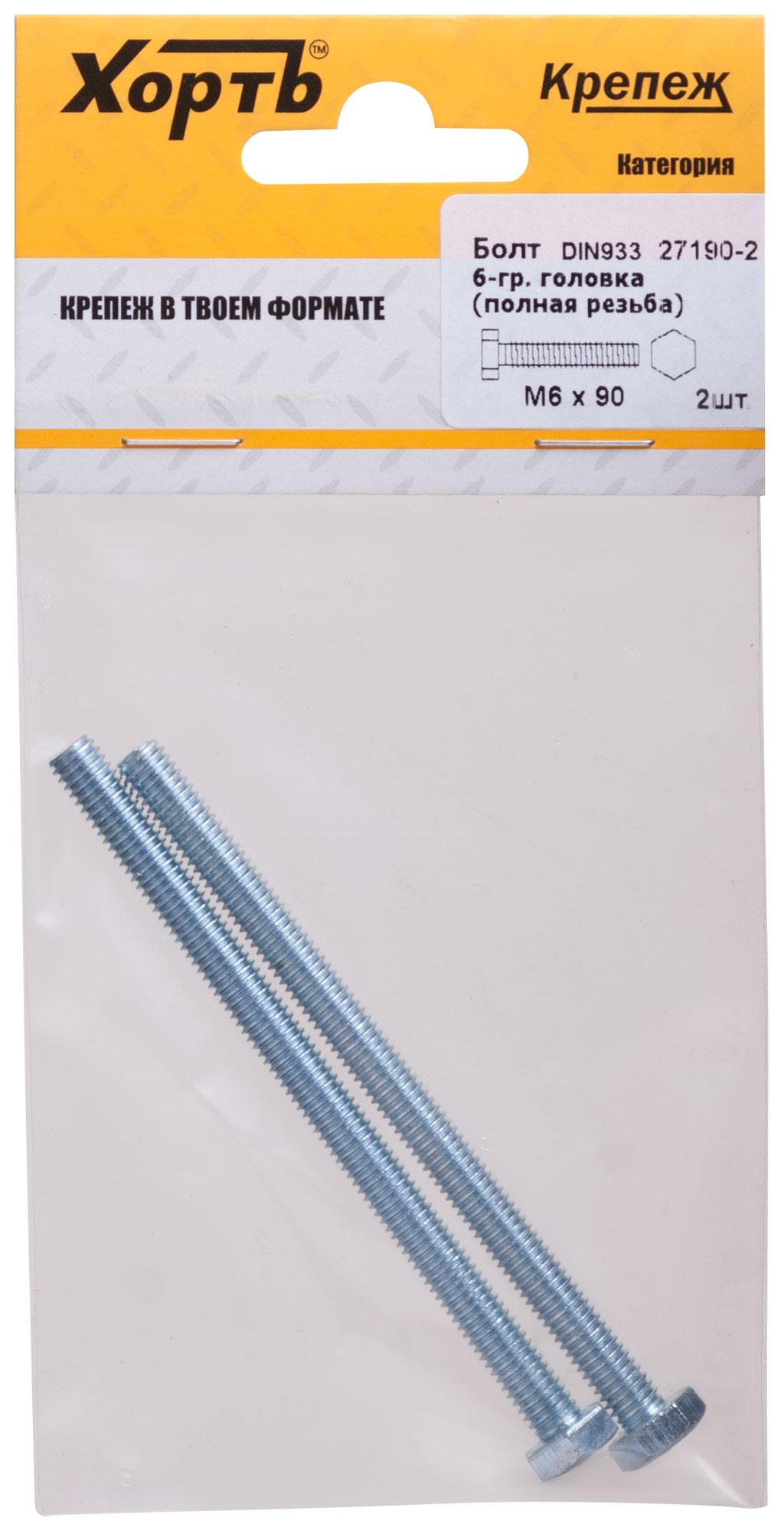 Болт 6-гранная головка (полная резьба) DIN933 М6 х 90 (фасовка 2 шт.)