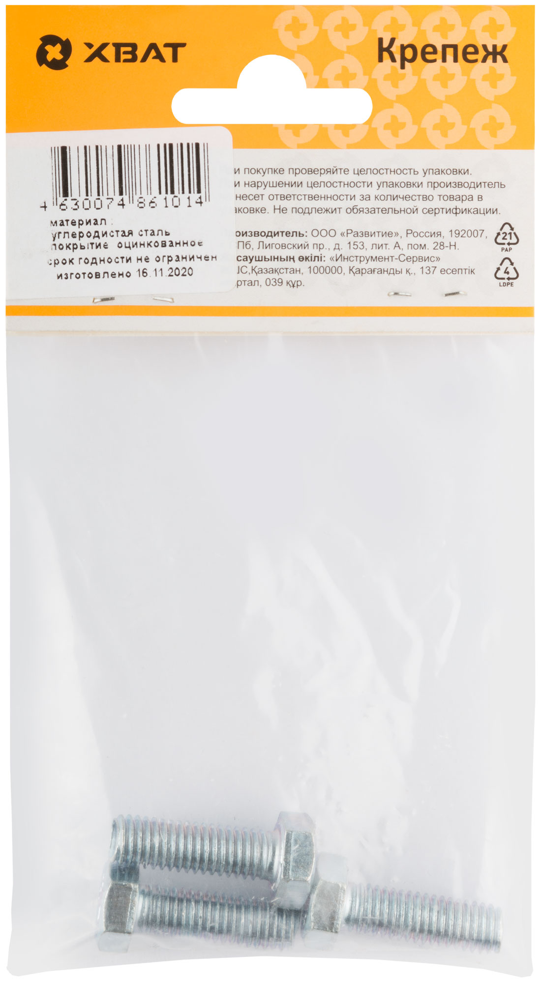 Болт изготовлен из конструкционной оцинкованной стали. Класс прочности 5.8. Рекомендуются для крепления и соединения узлов и деталей в машиностроении, строительстве. Позволяет быстро и качественно произвести монтаж.