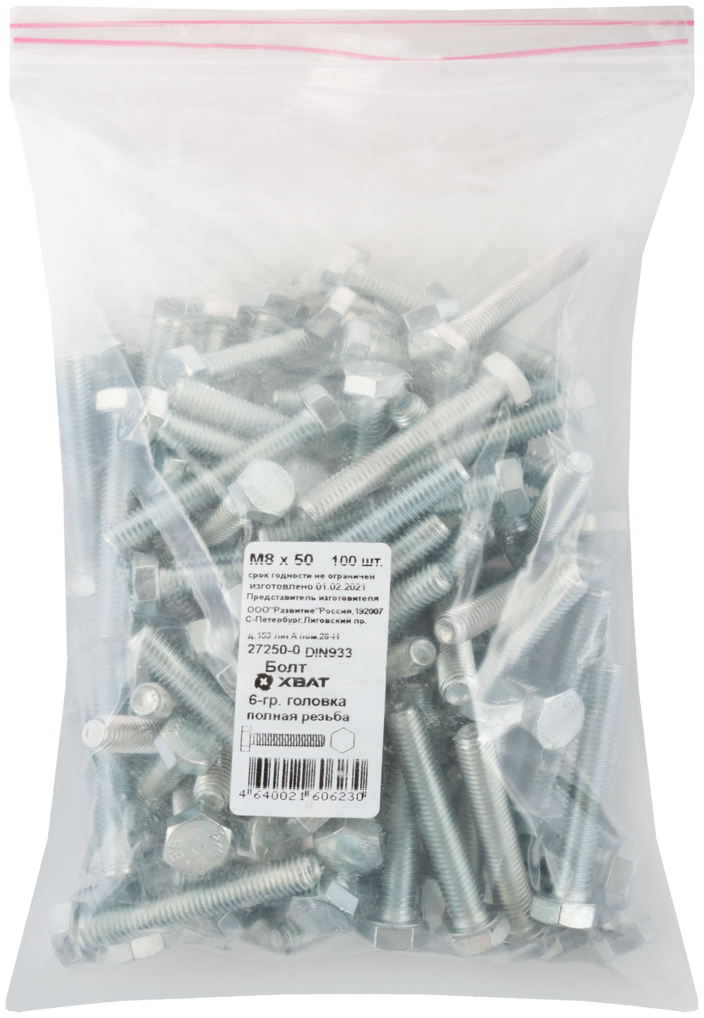 Болт 6-гранная головка (полная резьба) DIN933 М8 х 50 100 шт. Фасовка