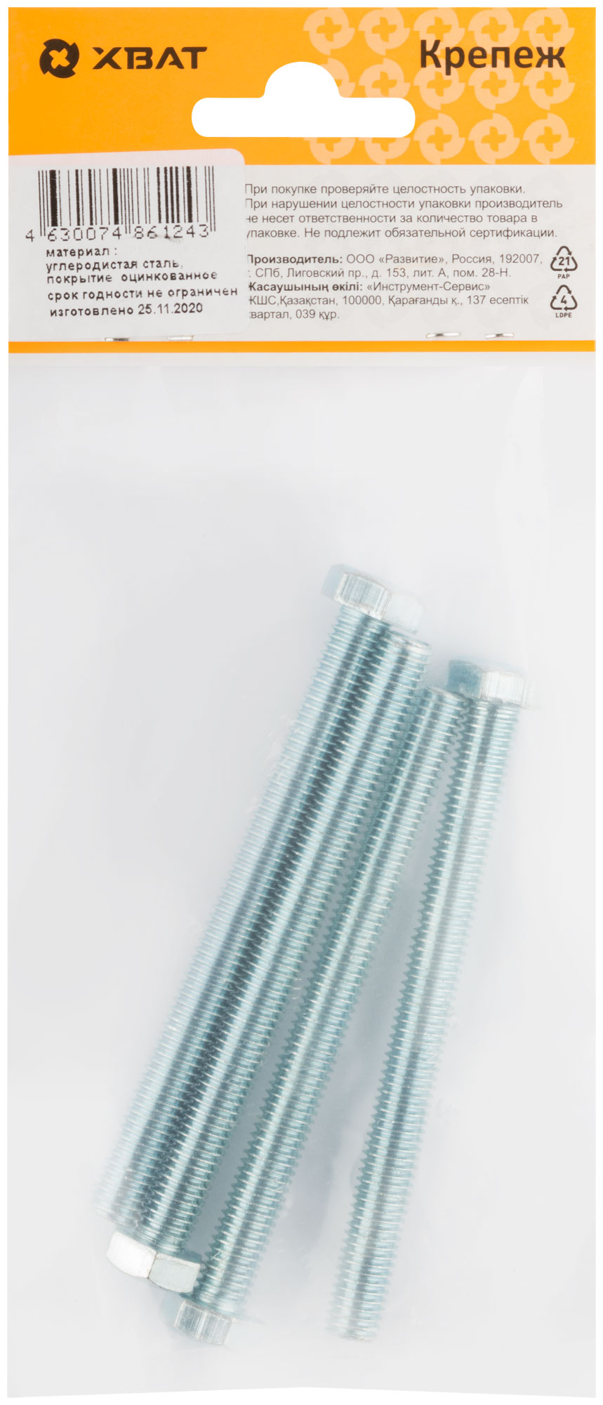 Болт изготовлен из конструкционной оцинкованной стали. Класс прочности 5.8. Рекомендуются для крепления и соединения узлов и деталей в машиностроении, строительстве. Позволяет быстро и качественно произвести монтаж.