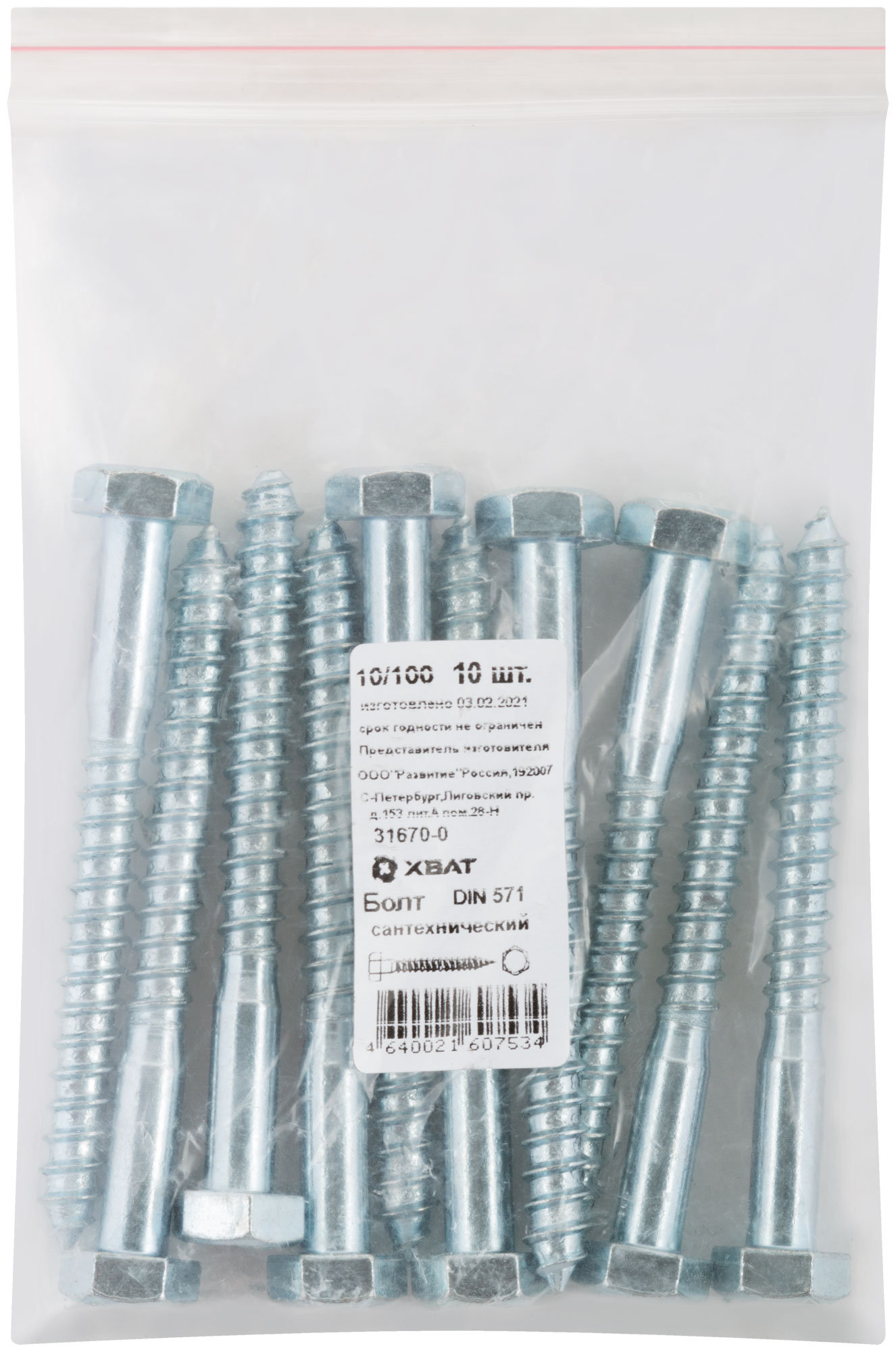 Болт сантехнический DIN 571 10 х 100 10 шт. Фасовка