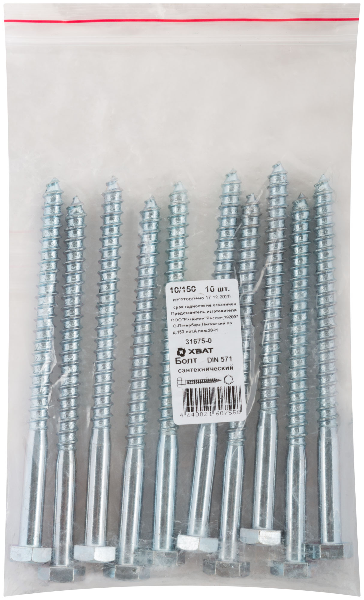 Болт сантехнический DIN 571 10 х 150 10 шт. Фасовка