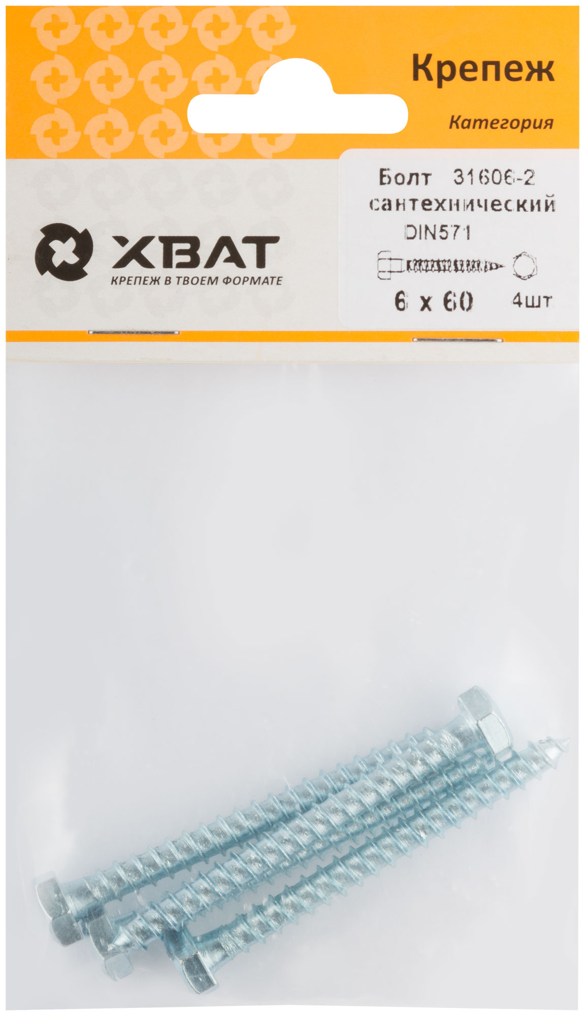 Болт сантехнический DIN 571 6 х 60 (фасовка 4 шт.)