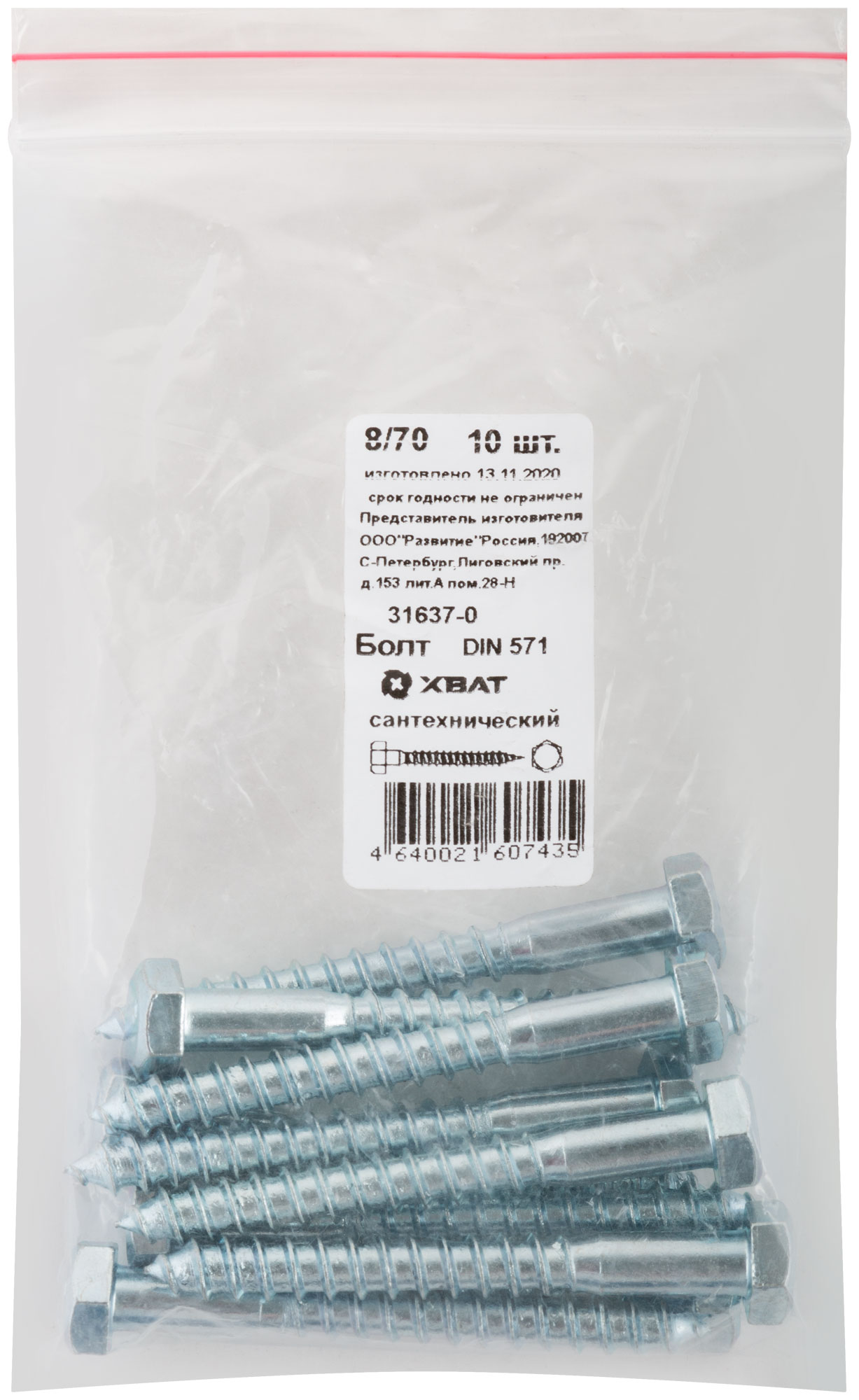 Болт сантехнический DIN 571 8 х 70 10 шт. Фасовка