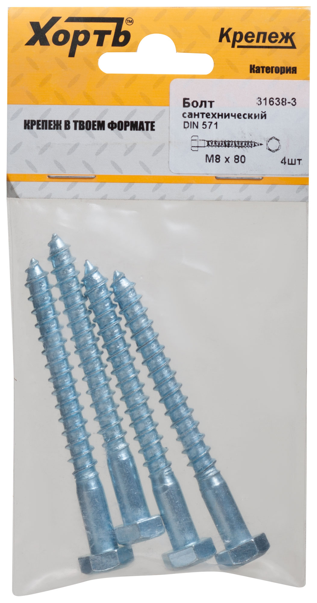 Болт сантехнический DIN 571 8 х 80 (фасовка 4 шт.)