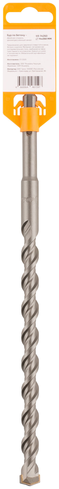 Бур по бетону CUTOP, Profi Plus - двойная спираль, три пылеотводящие кромки, 14 x 260 мм