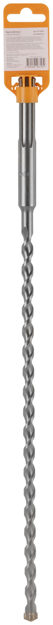 Бур по бетону с крестовым наконечником Cutop Profi Plus. Используют в мощных перфораторах с типоразмером хвостовика SDS-Max для сверления твердых пород камня, бетона, армированного бетона, кирпича. Для производства крестового наконечника бура используется сплав карбида вольфрама с добавлением кобальта 8%. Это позволяют производить точные отверстия и гарантирует длительную работу оснастки без изменения диаметра. Дополнительные резцы занижены по диаметру во избежание заклинивания бура. Конструкция спирали позволяет оптимально отводить шлам и предотвращает скапливание отходов в канавках. Спиральная часть бура выполнена из качественной инструментальной стали и проходит специальную термическую обработку. Благодаря этому бур выдерживает высокие нагрузки без риска деформации. При установке в патрон хвостовик необходимо смазывать. Материал: инструментальная сталь.Упаковка: пластиковый подвес.
