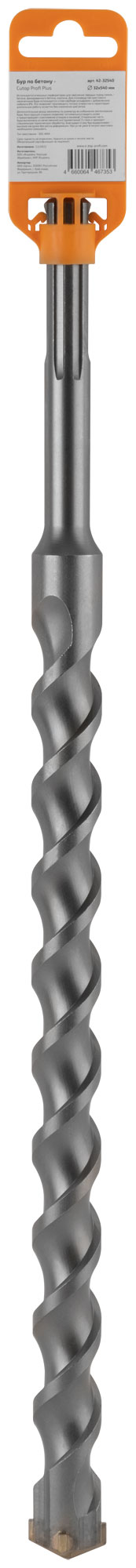 Бур по бетону CUTOP Profi Plus, SDS-Max с крестовым наконечником, 32x540 мм
