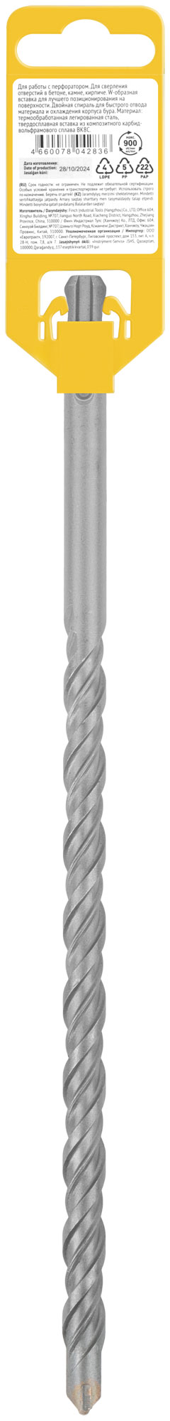 Профи. SDS-PLUS хвостовик. По бетону, камню, кирпичу. Для перфоратора. Для профессионального использования. Износостойкий. W-образная вставка с добавлением 8% кобальта для лучшего позиционирования на поверхности. Двойная спираль для быстрого отвода материала и охлаждения корпуса бура. Материал: легированная инструментальная сталь, твердосплавная вставка из карбида вольфрама ВК8С. Упаковка: пластиковый подвес.
