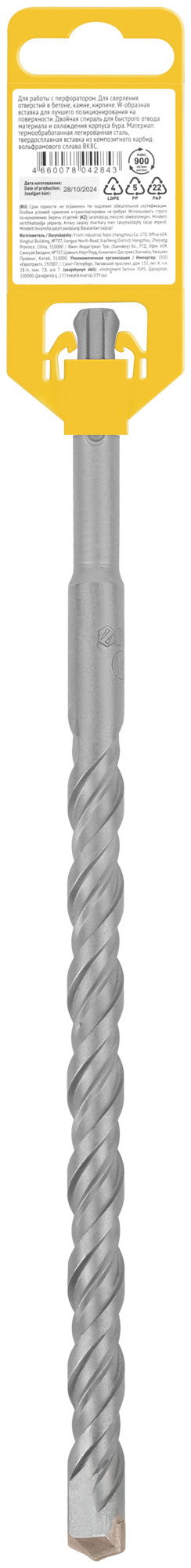 Профи. SDS-PLUS хвостовик. По бетону, камню, кирпичу. Для перфоратора. Для профессионального использования. Износостойкий. W-образная вставка с добавлением 8% кобальта для лучшего позиционирования на поверхности. Двойная спираль для быстрого отвода материала и охлаждения корпуса бура. Материал: легированная инструментальная сталь, твердосплавная вставка из карбида вольфрама ВК8С. Упаковка: пластиковый подвес.