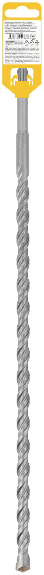 Профи. SDS-PLUS хвостовик. По бетону, камню, кирпичу. Для перфоратора. Для профессионального использования. Износостойкий. W-образная вставка с добавлением 8% кобальта для лучшего позиционирования на поверхности. Двойная спираль для быстрого отвода материала и охлаждения корпуса бура. Материал: легированная инструментальная сталь, твердосплавная вставка из карбида вольфрама ВК8С. Упаковка: пластиковый подвес.