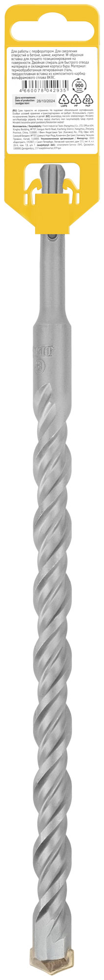 Бур по бетону SDS PLUS, Профи, W-образная вставка, двойная спираль, 18 х 310 мм