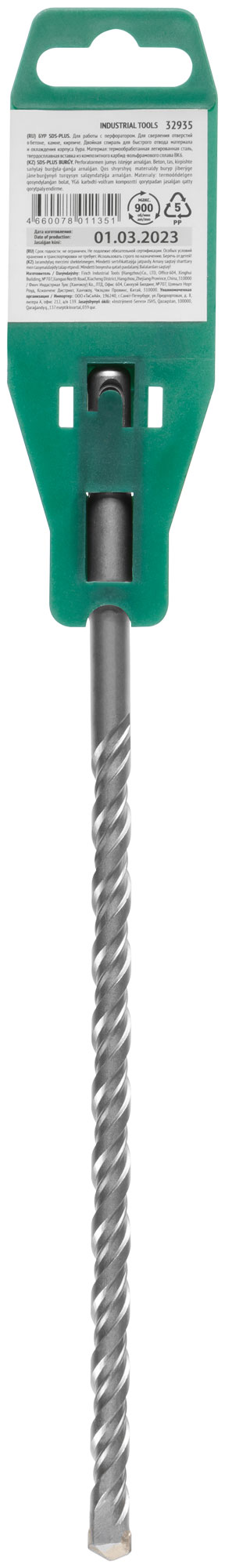 Профи. SDS-PLUS хвостовик. С двойной резьбой. Для работы по бетону, камню и кирпичу. Для перфоратора. Для профессионального использования. Материал: инструментальная сталь с твердосплавной вставкой. Упаковка: пластиковый подвес.