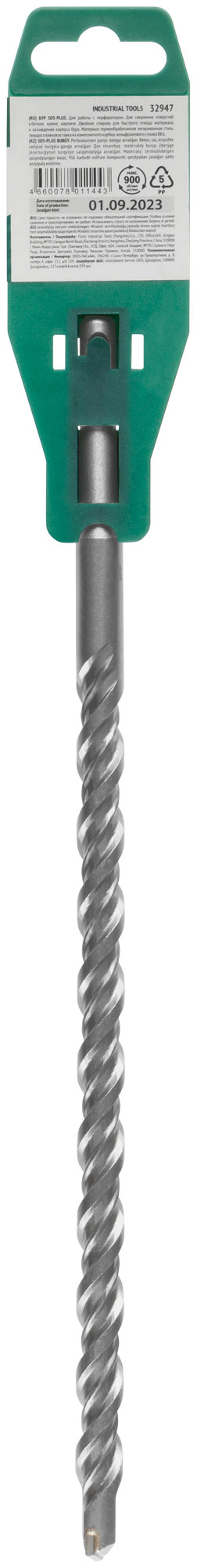 Профи. SDS-PLUS хвостовик. С двойной резьбой. Для работы по бетону, камню и кирпичу. Для перфоратора. Для профессионального использования. Материал: инструментальная сталь с твердосплавной вставкой. Упаковка: пластиковый подвес.
