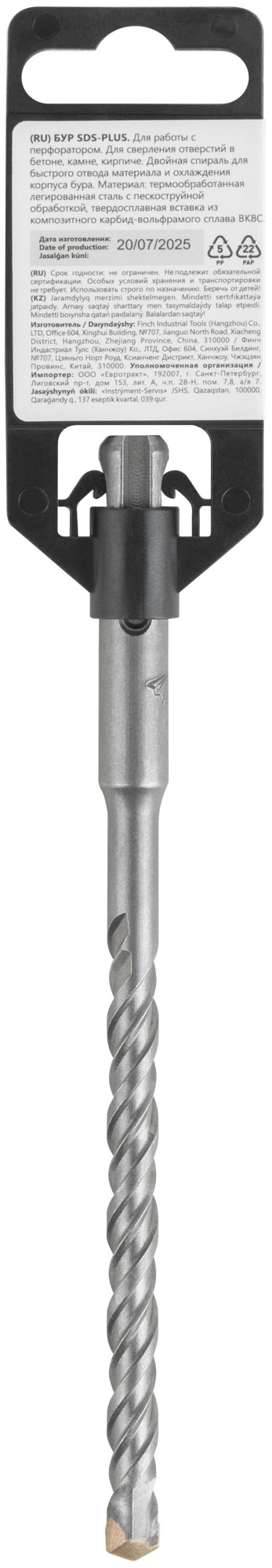 Для работы по камню, бетону, кирпичу. Двойная спираль. Материал: термообработанная инструментальная сталь, твердосплавная вставка. Упаковка: пластиковый подвес.