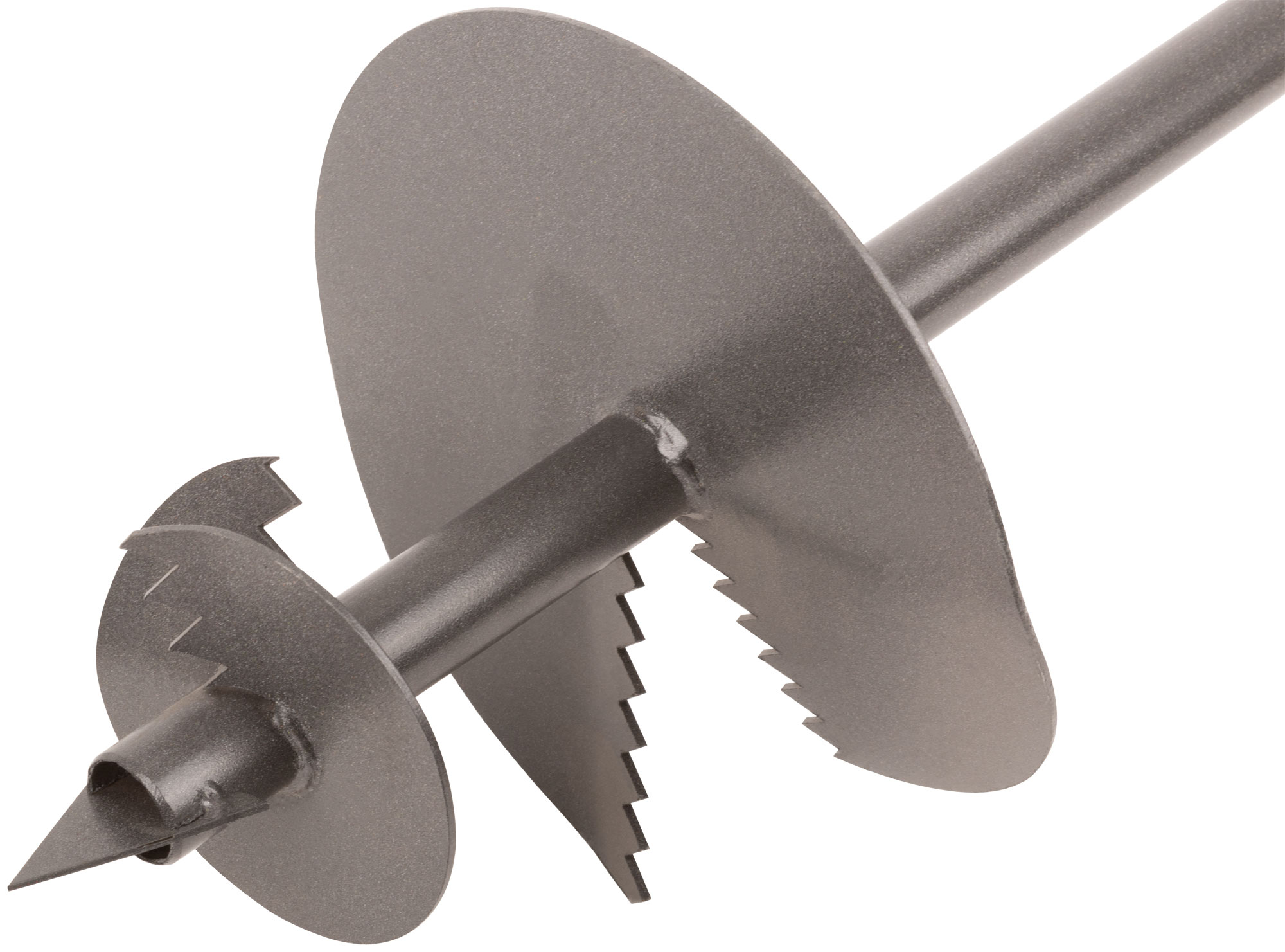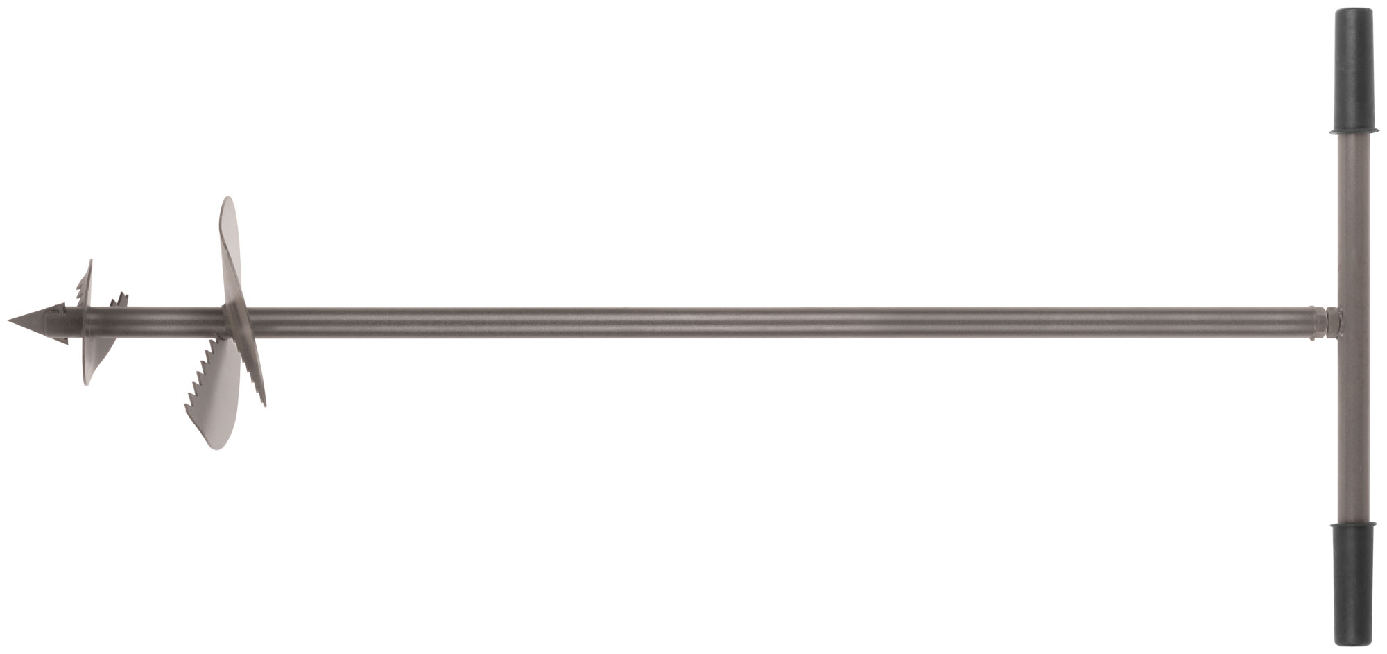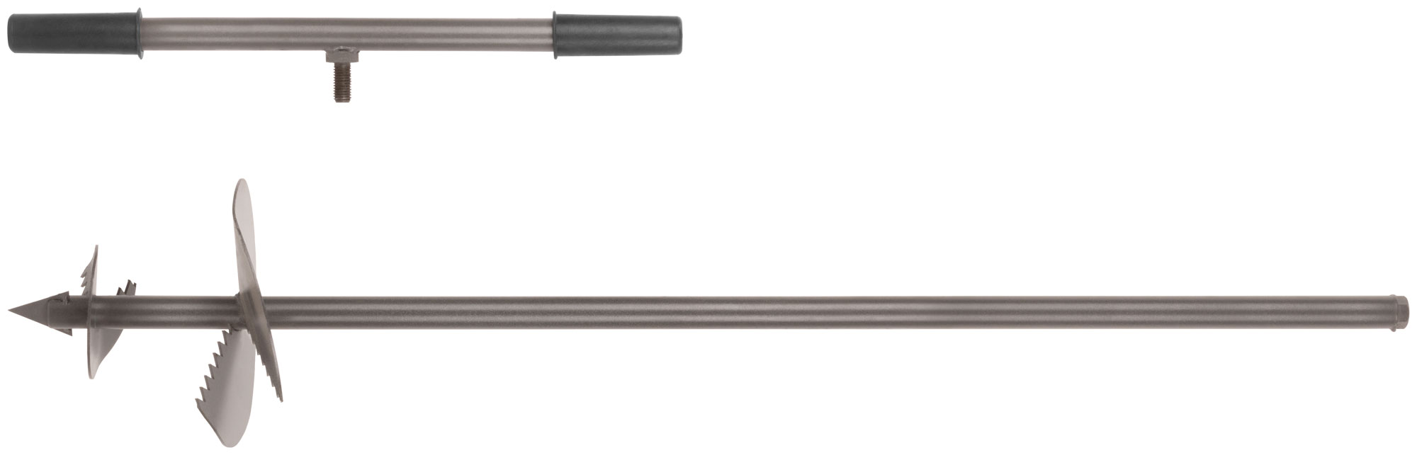 Бур садовый шнековый. Разборный, с возможностью увеличения длины за счет использования удлинителя 77248. Для ручного формирования скважин в грунте, предназначенных для установки различных опор, столбов, заливки свайных фундаментов и т.д. Материал: инструментальная сталь.