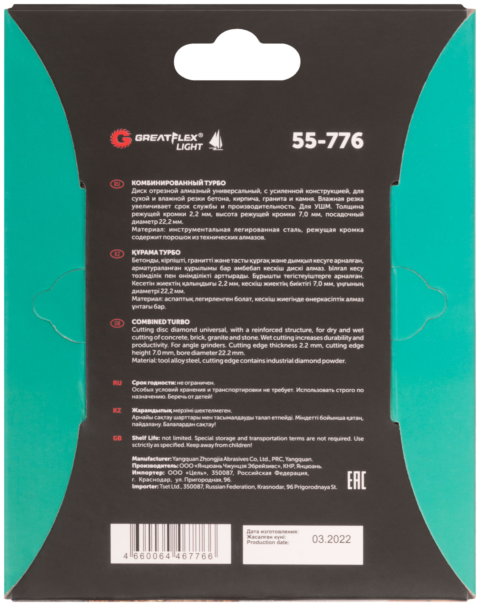 Диск отрезной алмазный комбинированный турбо GreatFlex Light, 125 x 2.2 x 7.0 x 22.2 мм