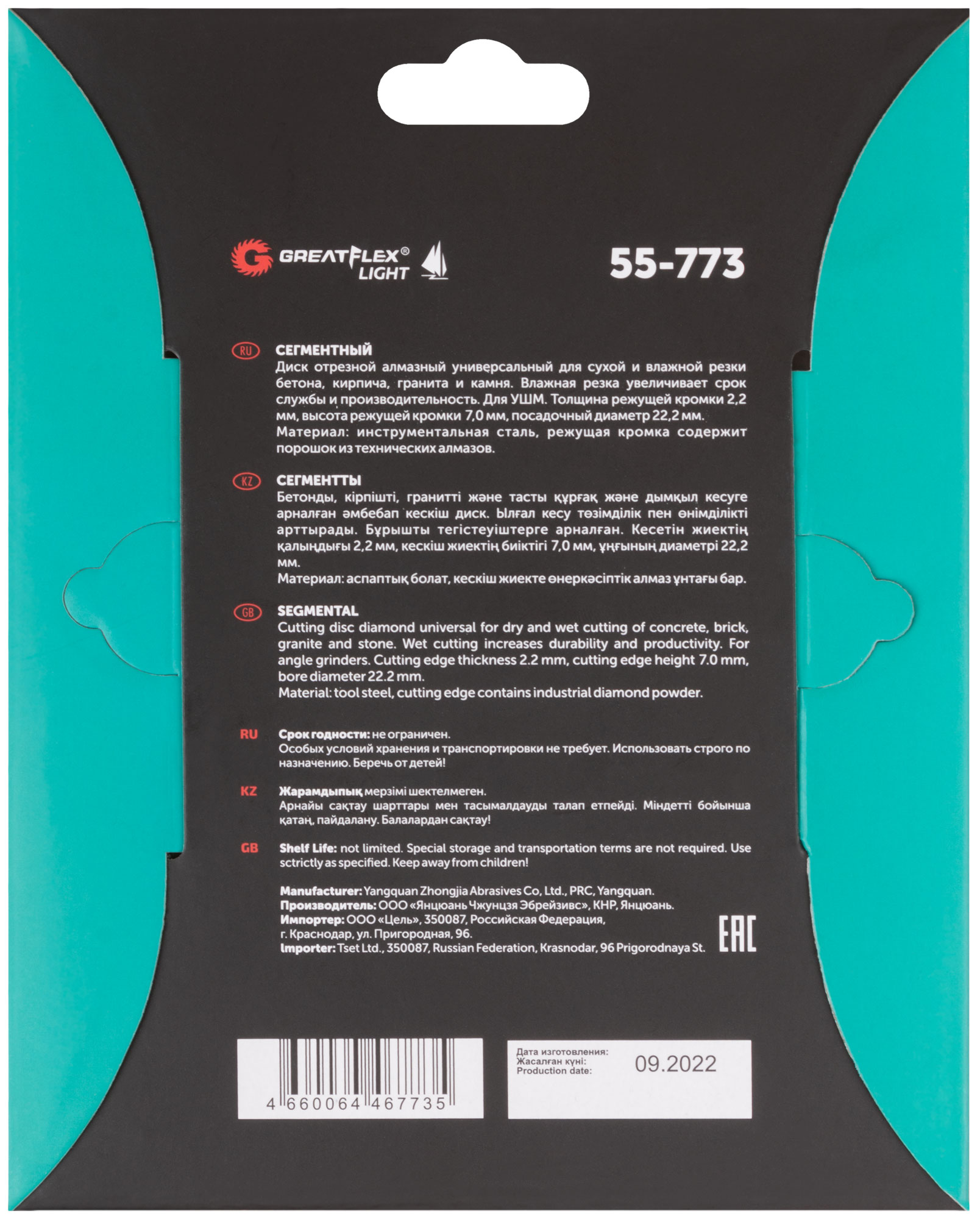 Диск отрезной алмазный сегментный GreatFlex Light, 150 x 2.2 x 7.0 x 22.2 мм
