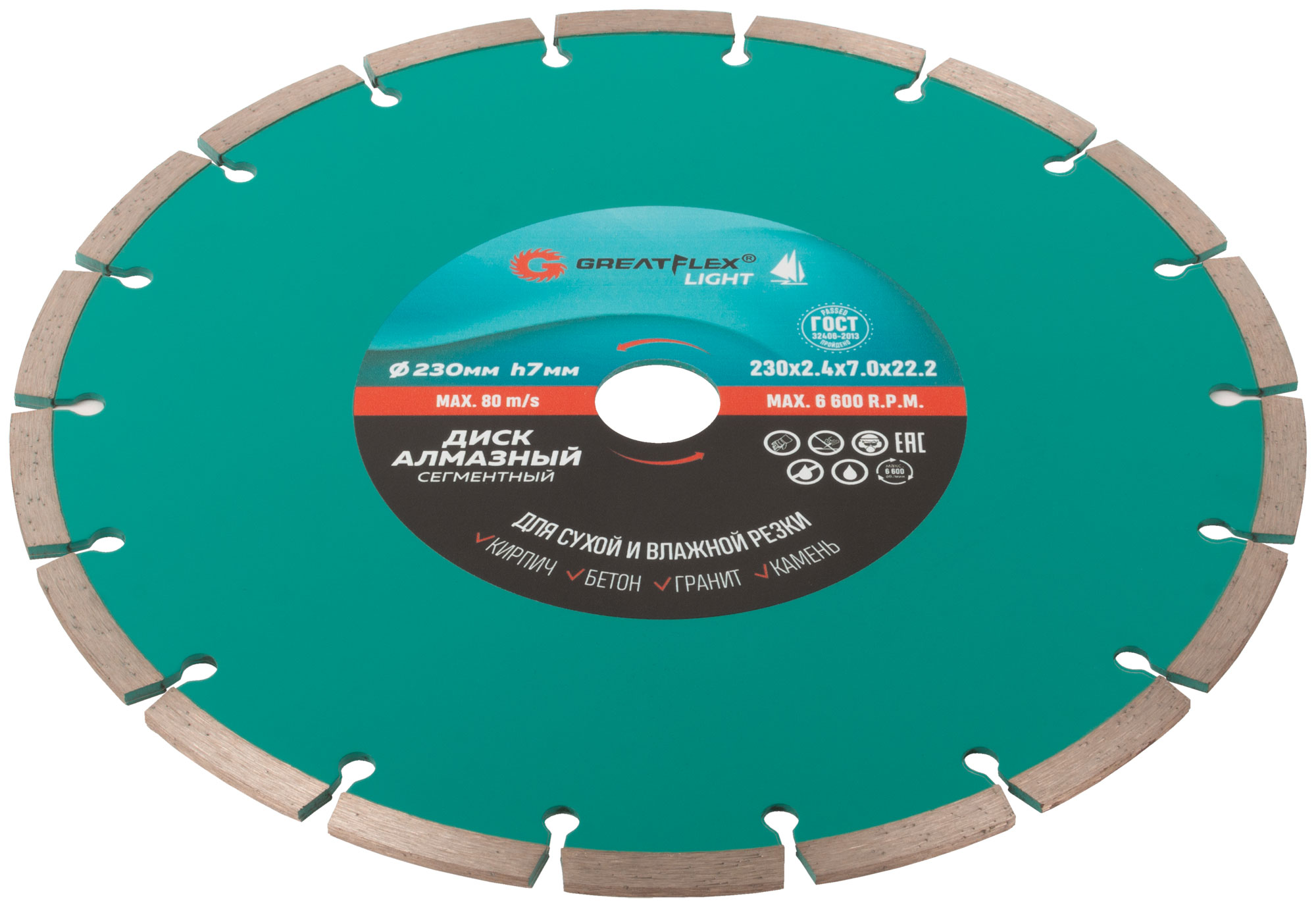 Диск отрезной алмазный сегментный GreatFlex Light, 230 x 2.4 x 7.0 x 22.2 мм