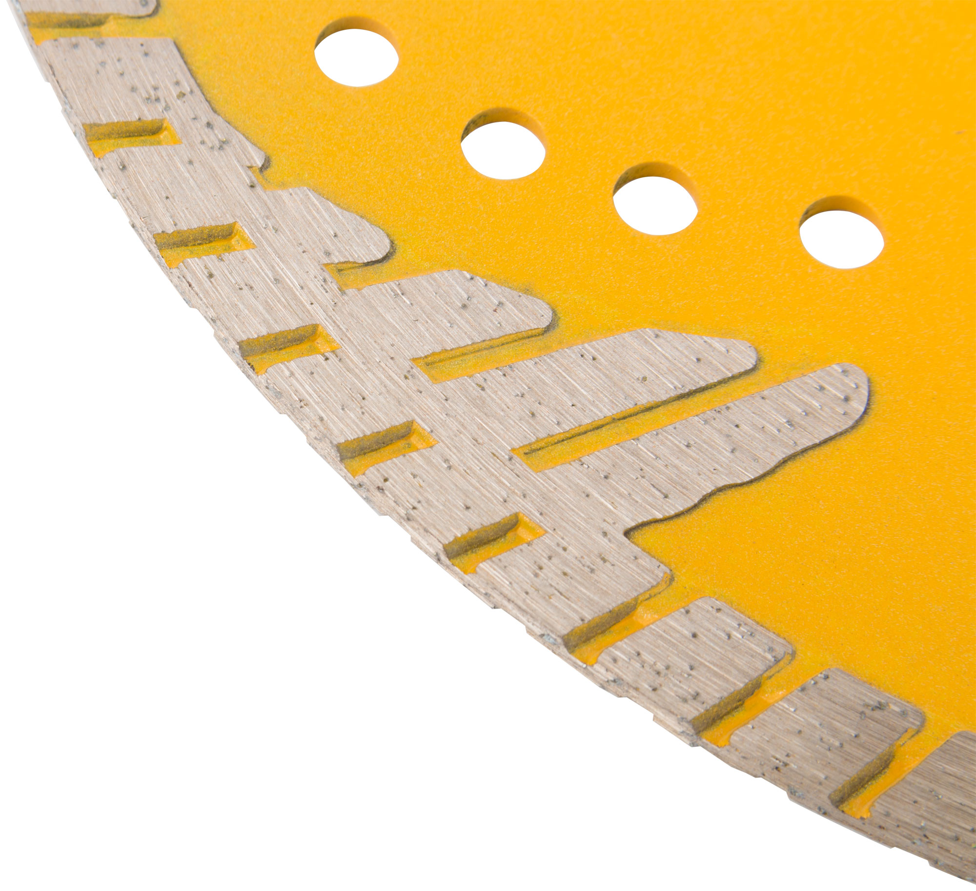 Для резки армированного бетона, керамической плитки, гранита, кирпича, камня. Защитные сектора диска обеспечивают защиту режущего слоя от бокового износа. Изготовлен методом горячего прессования, что обеспечивает большую твердость и более длительный срок службы диска в сравнении с методом холодного прессования. Диски характеризуются повышенной концентрацией алмазов, улучшенным качеством алмазных зерен и оптимально подобранной металлической связкой. Эти преимущества обеспечивают высокую производительность и увеличенный срок службы. Материал: инструментальная сталь, режущая кромка содержит порошок из технических алмазов. Упаковка: двойной блистер.