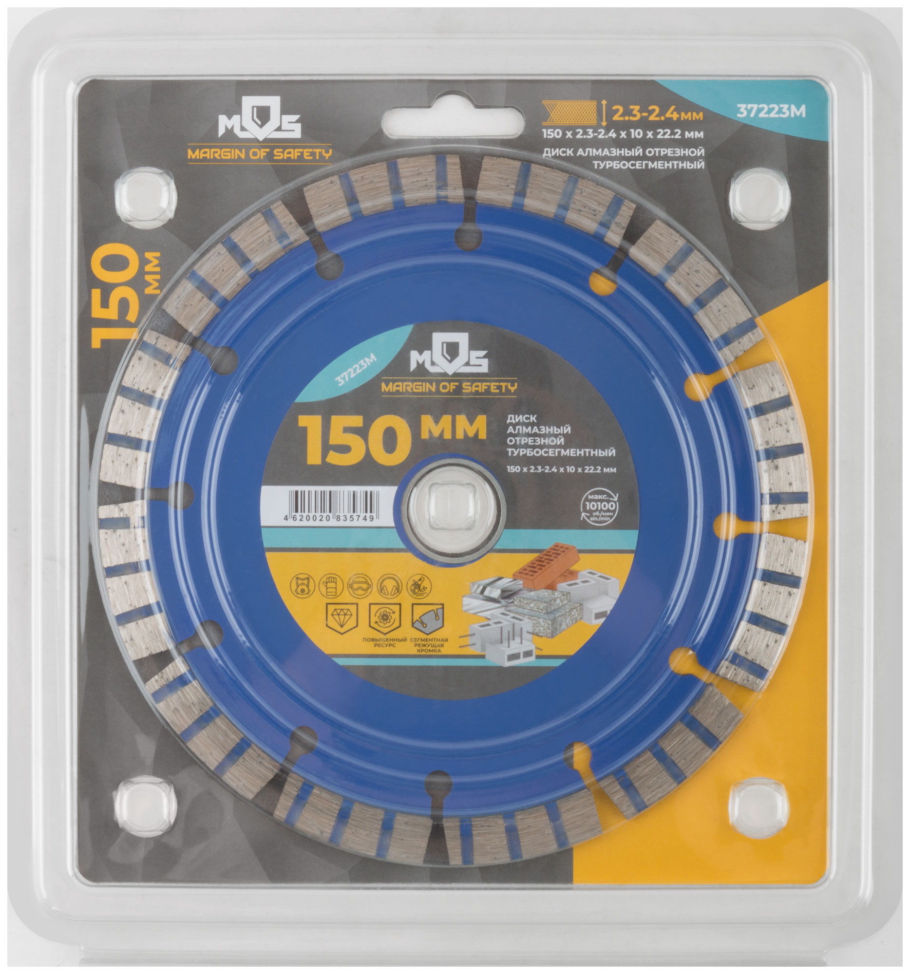 Диск отрезной алмазный турбо-сегментный, 150 x 2,3-2,4 x 10 x 22.2 мм