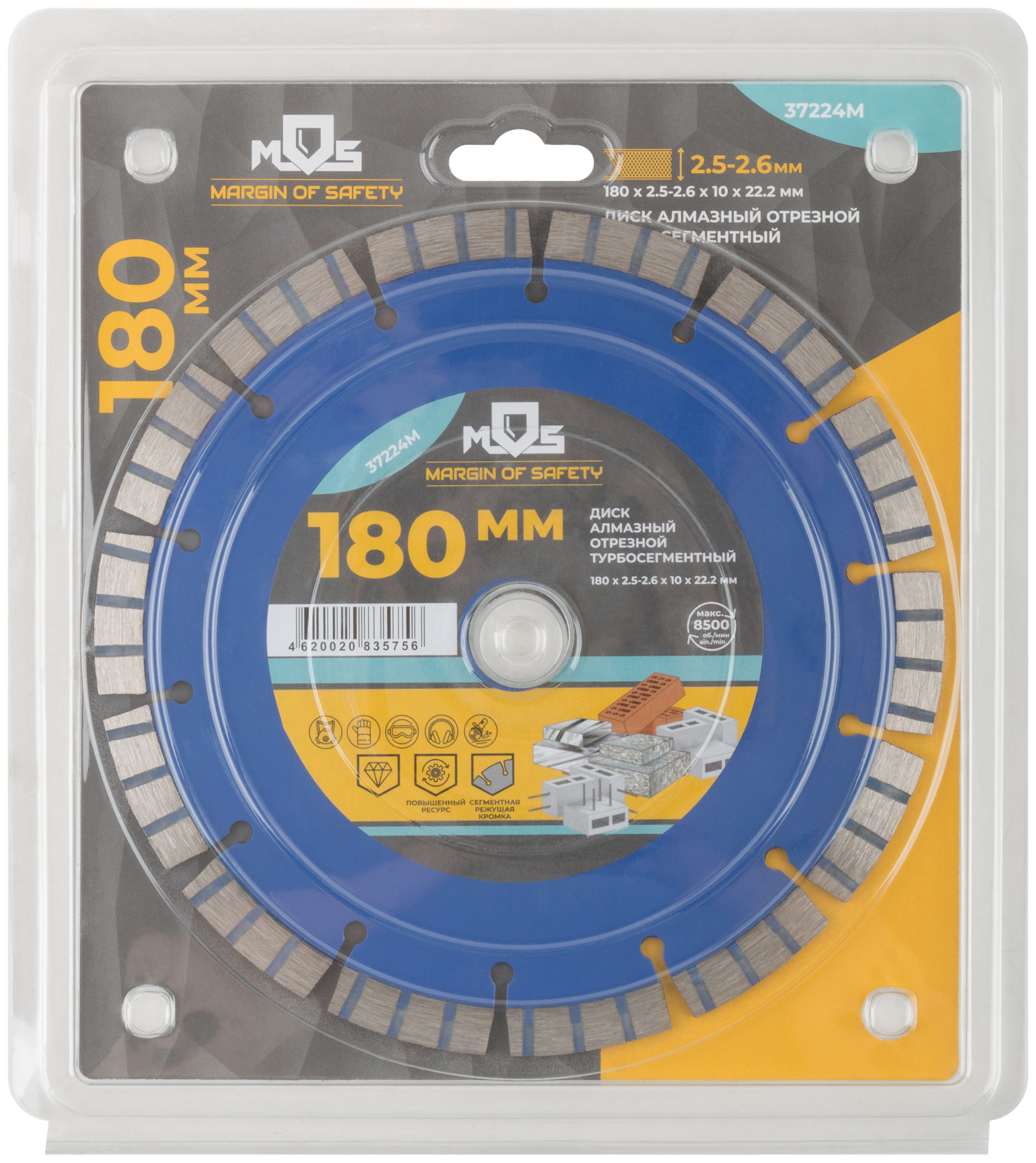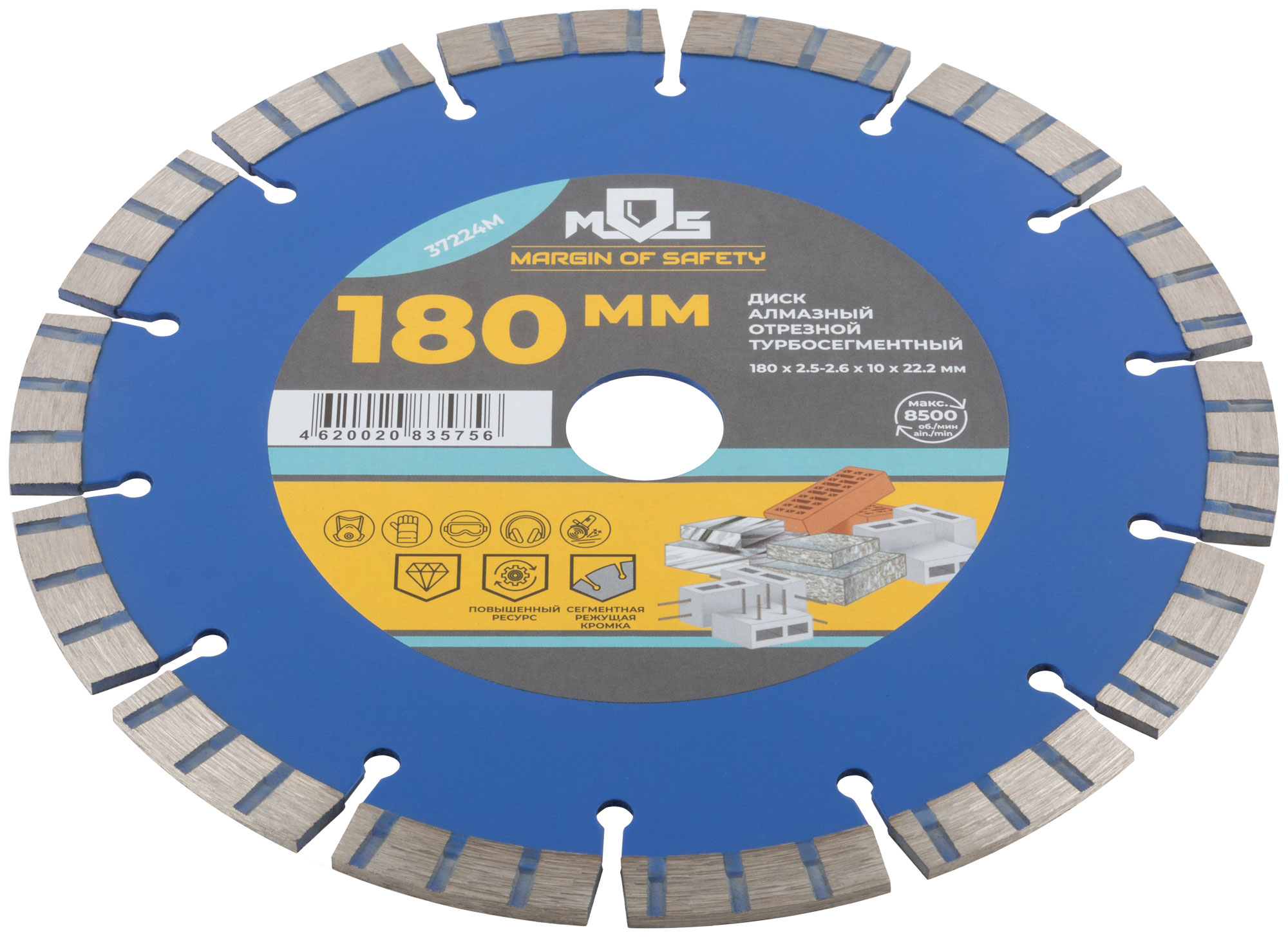 Диск отрезной алмазный турбо-сегментный, 180 x 2,5-2,6 x 10 x 22.2 мм
