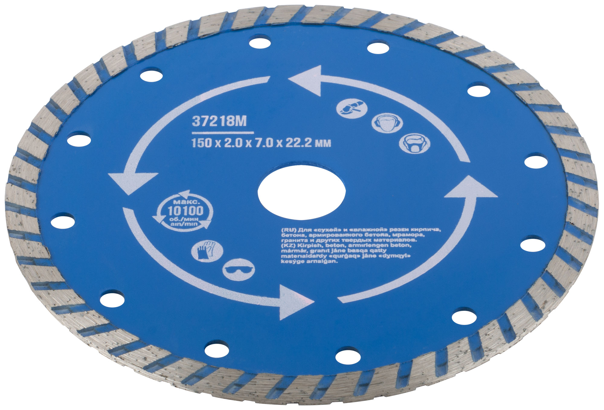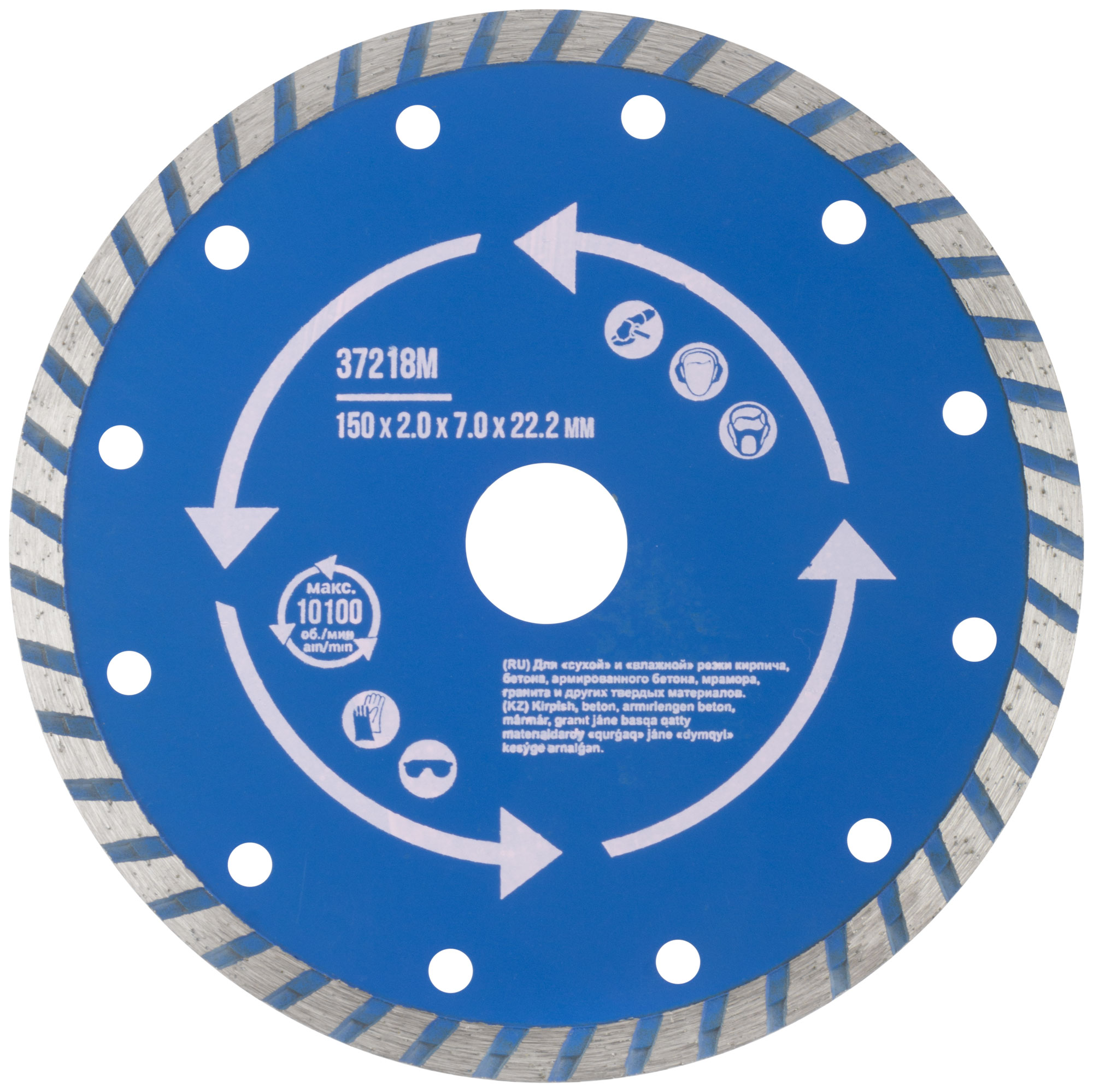 "Турбо". Для использования с УШМ. Посадочный диаметр 22,2. Для "сухой" и "влажной"резки кирпича, армированного бетона, мрамора, гранита и других твердых материалов. Специальный профиль режущей кромки "Турбо"Увеличивает скорость реза и способствует более эффективному удалению отработанного материала, предотвращая перегрев диска. Материал: инструментальная сталь, режущая кромка-расплав с техническими алмазами. Уп: Блистер