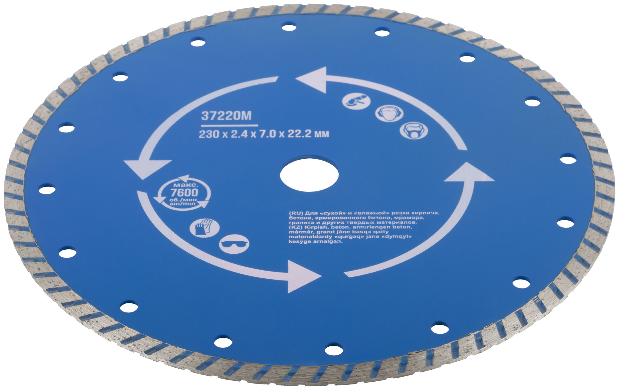 Диск отрезной алмазный "турбо" (сухая и влажная резка) 230 х 2,4 х 7 х 22,2 мм
