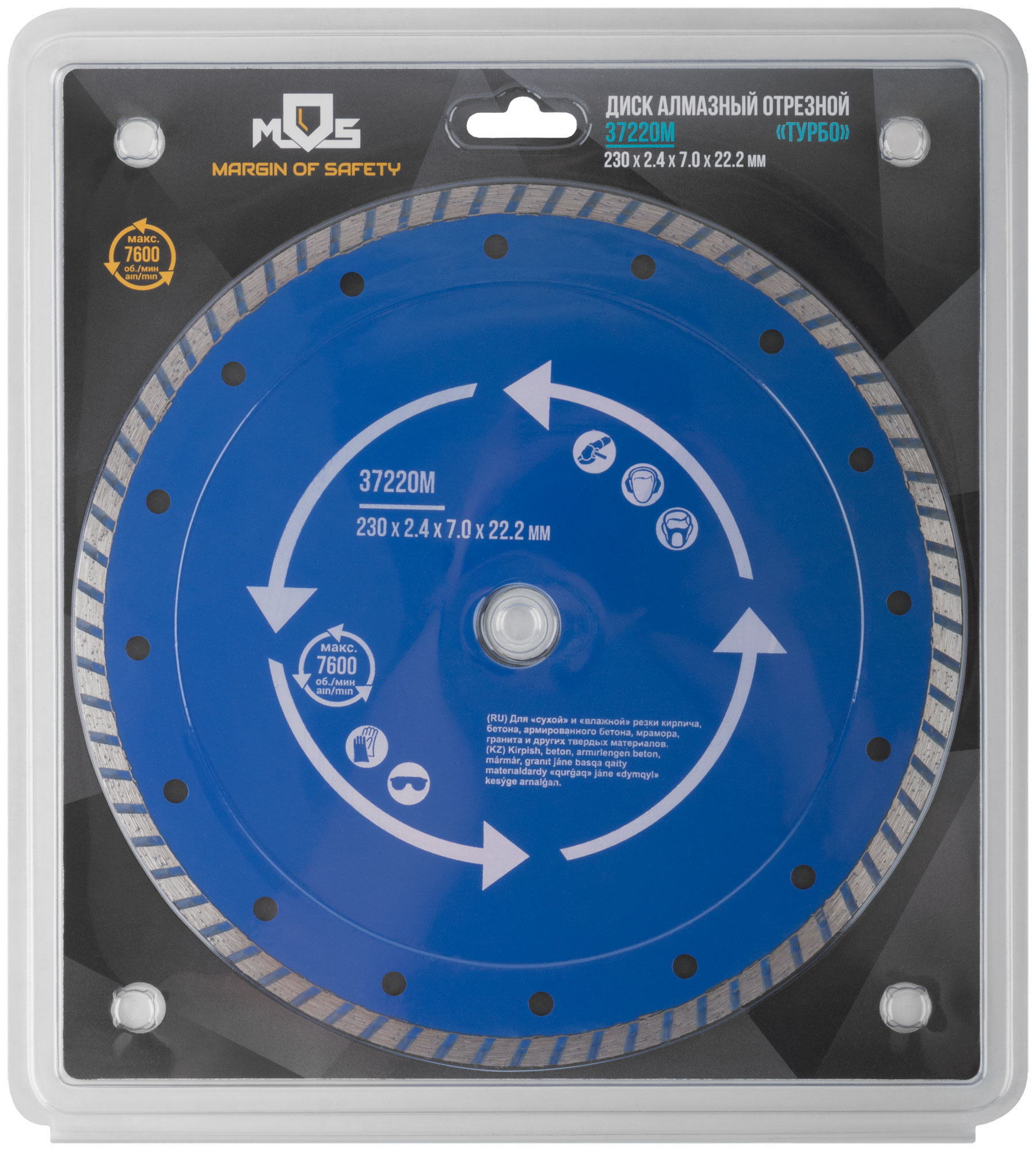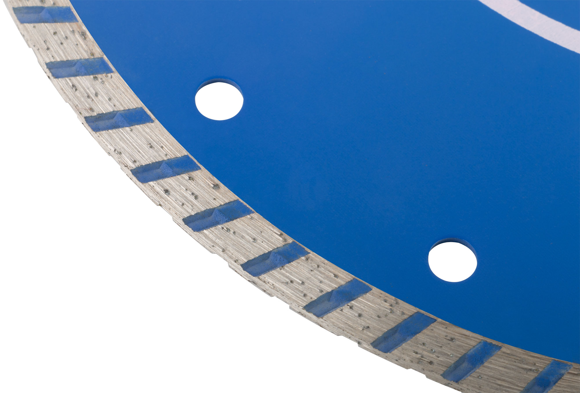 "Турбо". Для использования с УШМ. Посадочный диаметр 22,2. Для "сухой" и "влажной"резки кирпича, армированного бетона, мрамора, гранита и других твердых материалов. Специальный профиль режущей кромки "Турбо"Увеличивает скорость реза и способствует более эффективному удалению отработанного материала, предотвращая перегрев диска. Материал: инструментальная сталь, режущая кромка-расплав с техническими алмазами. Уп: Блистер