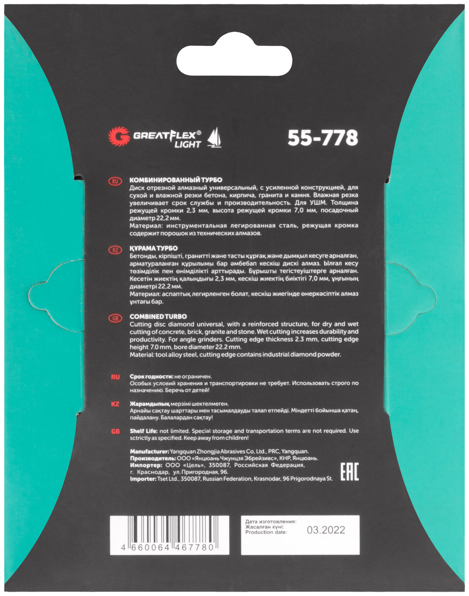 Диск отрезной алмазный Турбо волна GreatFlex Light, 125 x 2.3 x 7.0 x 22.2 мм