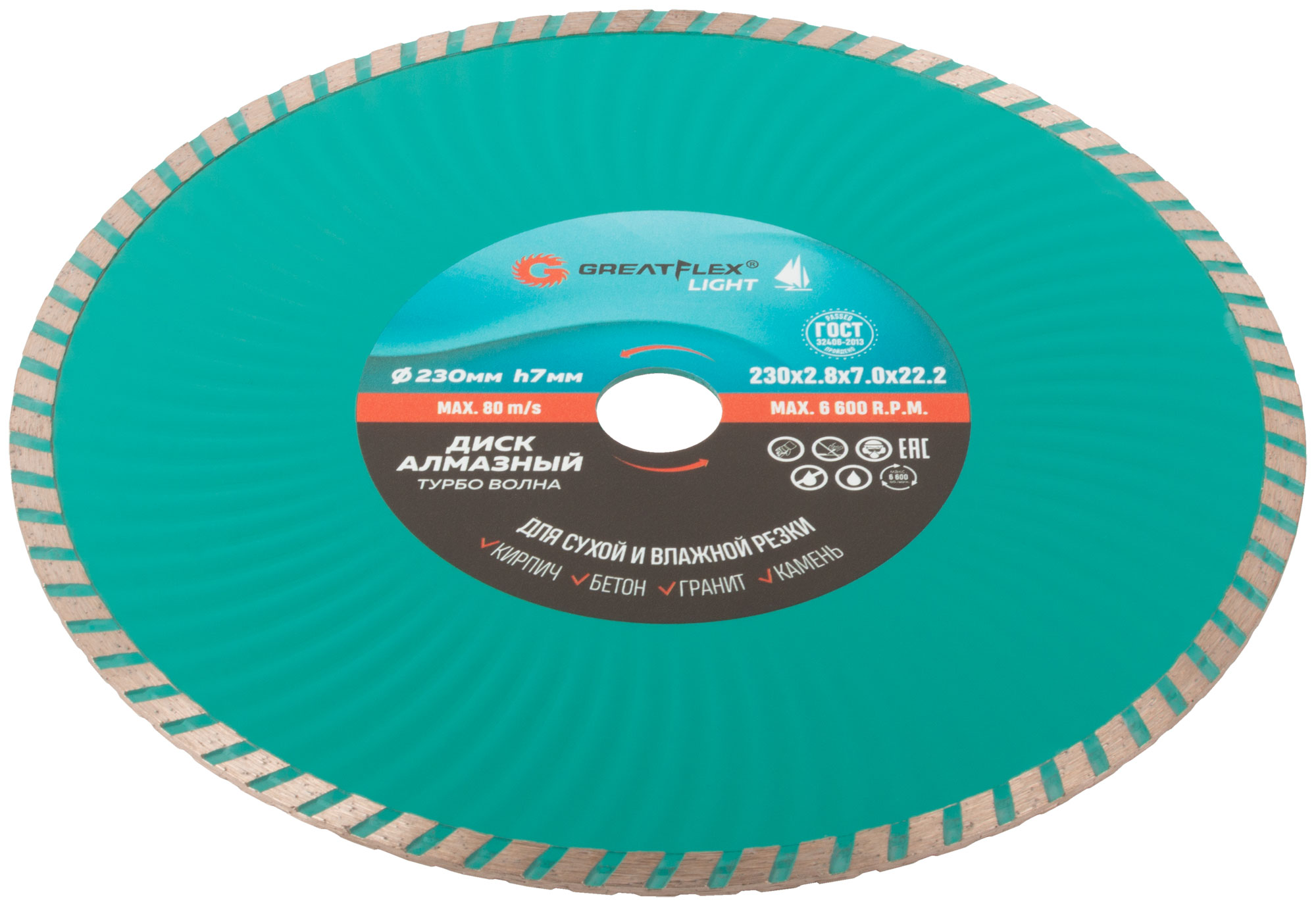 Диск отрезной алмазный Турбо волна GreatFlex Light, 230 x 2.8 x 7.0 x 22.2 мм