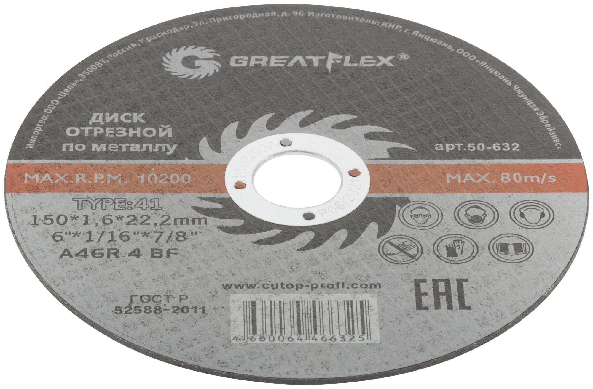 Диск отрезной по металлу Greatflex T41-150 х 1,6 х 22.2 мм, класс Master