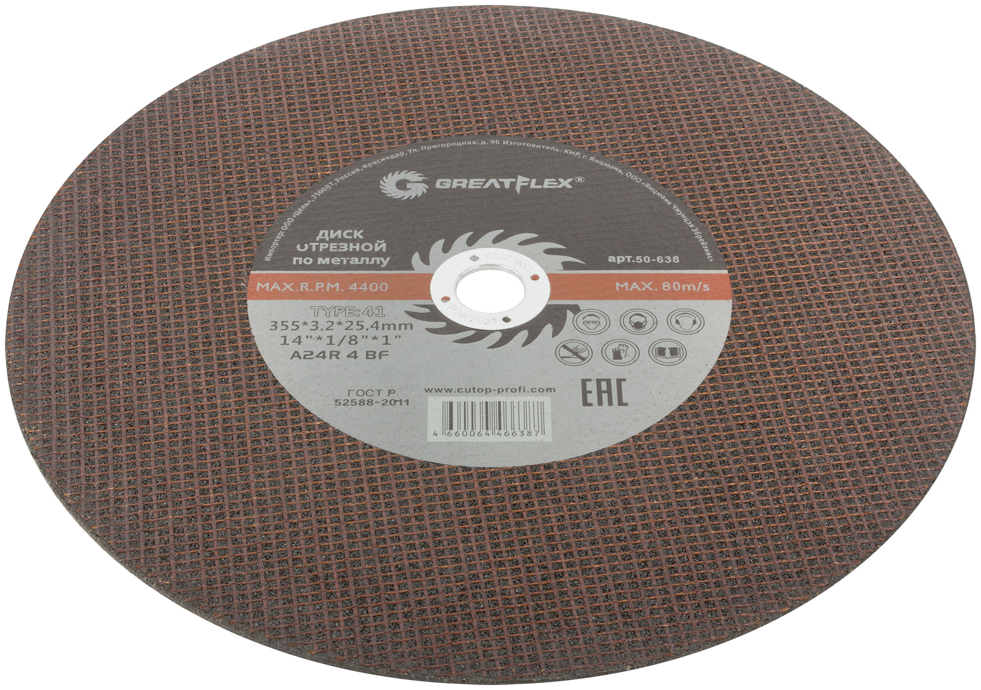 Диск отрезной по металлу Greatflex T41-355 х 3,2 х 25,4 мм, класс Master