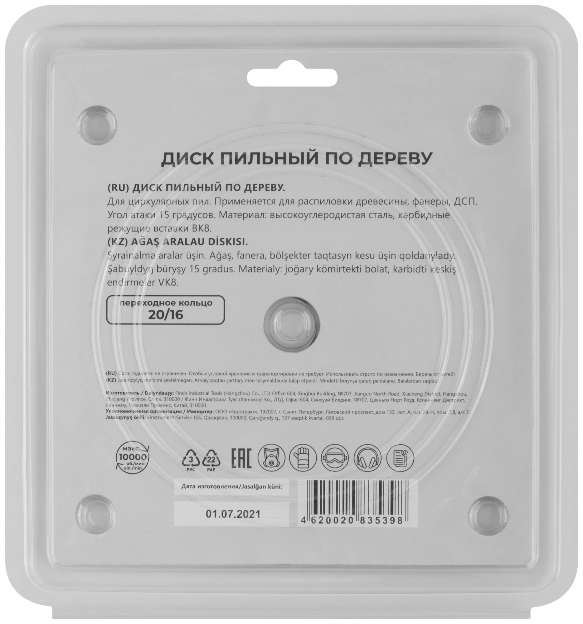 По дереву. Зубья из твердого сплава ВК8 (карбид вольфрама). Корпус из легированной высокоуглеродистой стали. Угол атаки +15°. Упаковка: блистер.