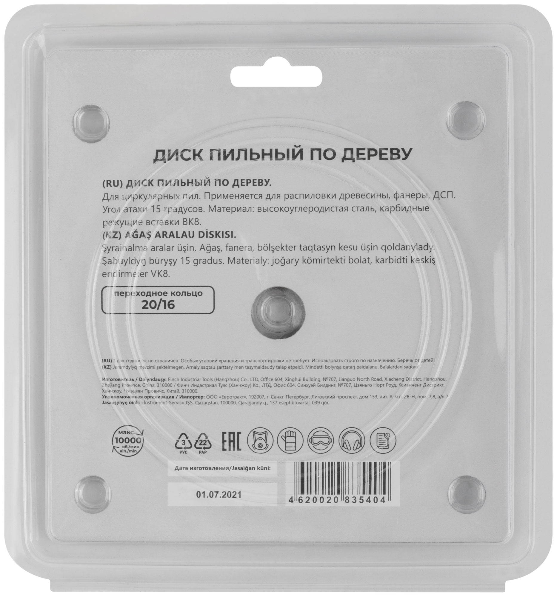 По дереву. Зубья из твердого сплава ВК8 (карбид вольфрама). Корпус из легированной высокоуглеродистой стали. Угол атаки +15°. Упаковка: блистер.