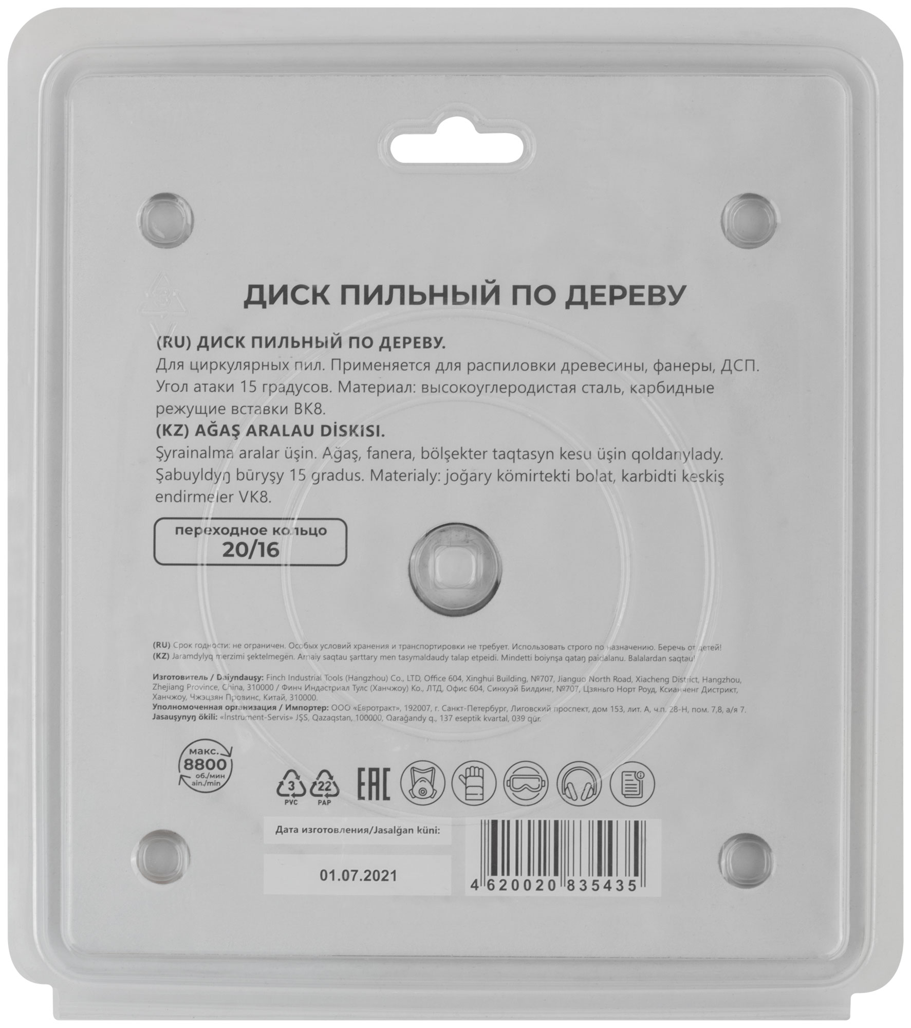 По дереву. Зубья из твердого сплава ВК8 (карбид вольфрама). Корпус из легированной высокоуглеродистой стали. Угол атаки +15°. Упаковка: блистер.