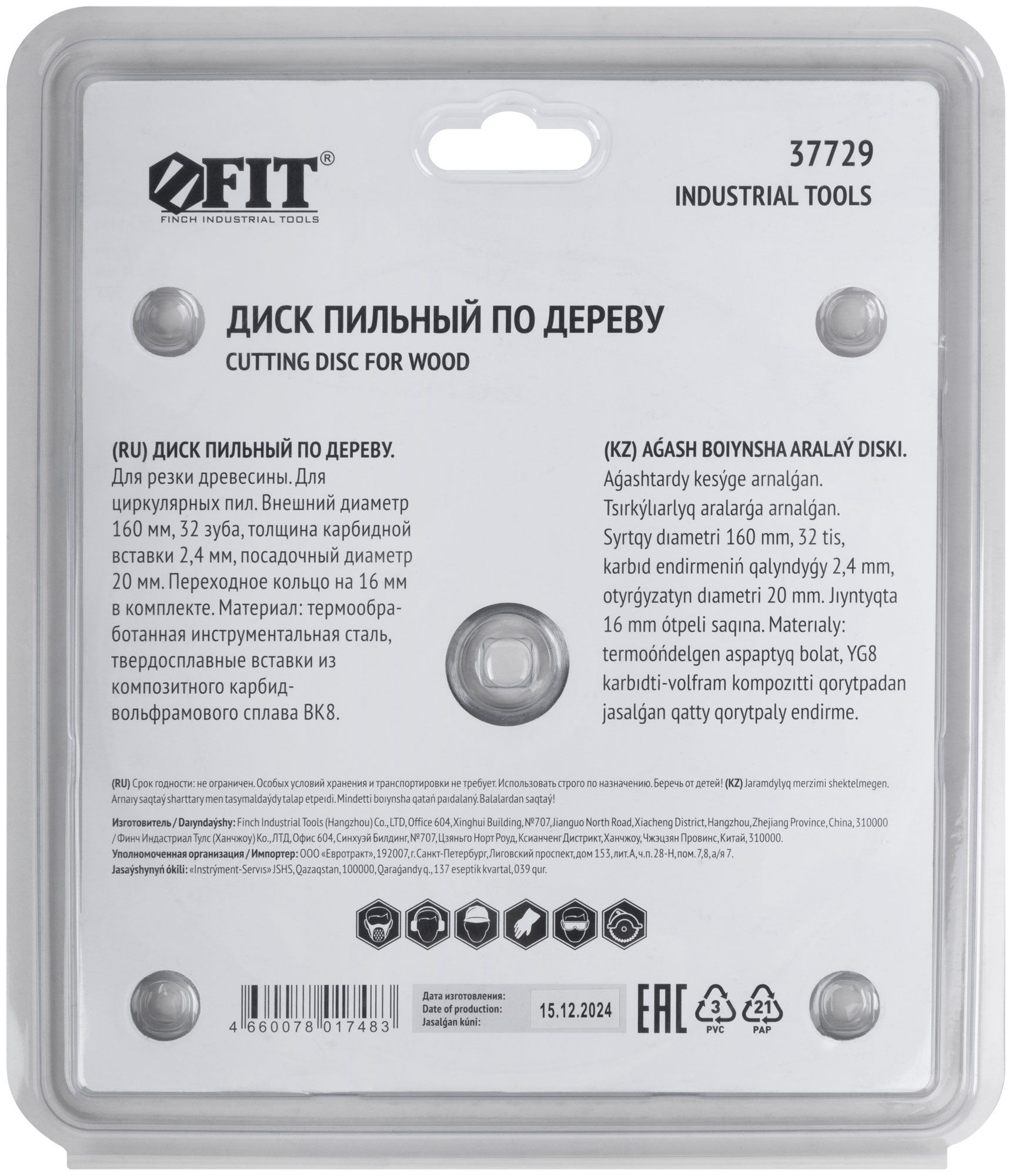 Диск пильный для циркулярных пил по дереву 160 х 20/16 х 32T