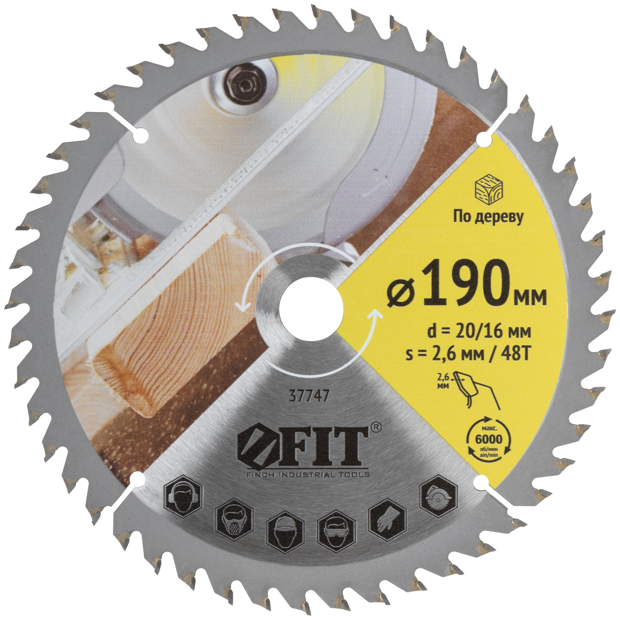 Диск пильный для циркулярных пил по дереву 190 х 20/16 х 48T