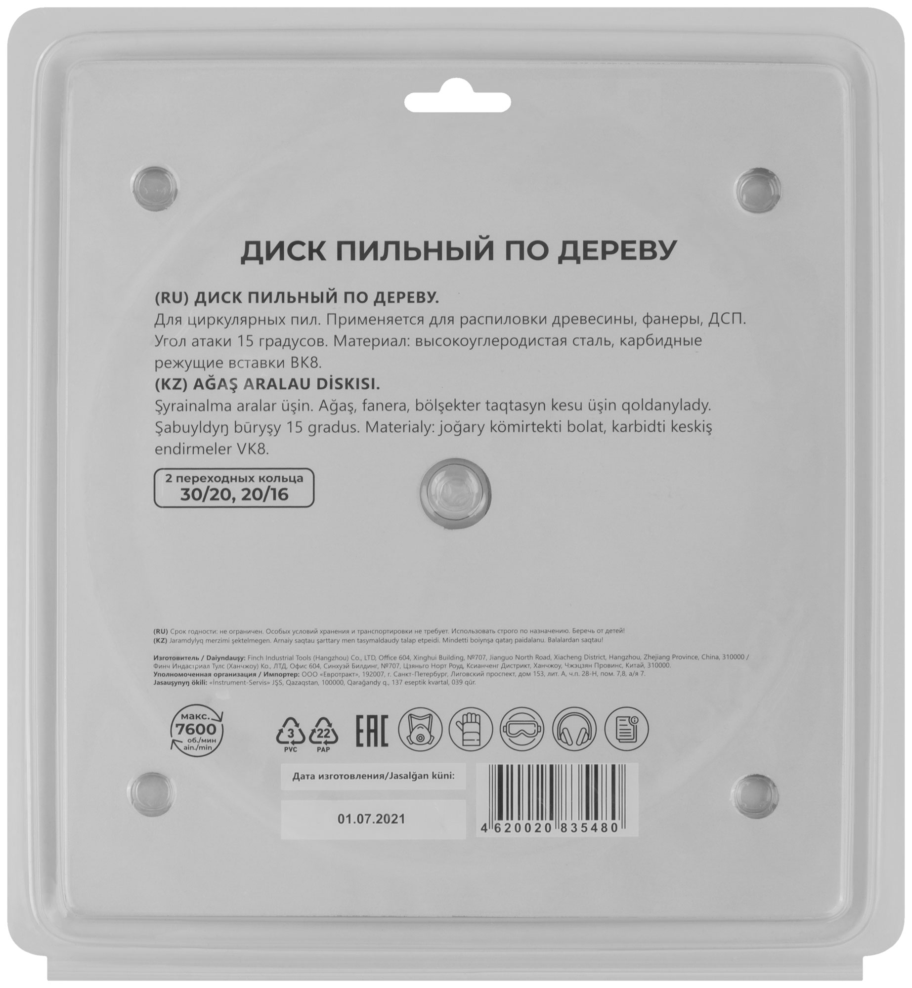 По дереву. Зубья из твердого сплава ВК8 (карбид вольфрама). Корпус из легированной высокоуглеродистой стали. Угол атаки +15°. Упаковка: блистер.