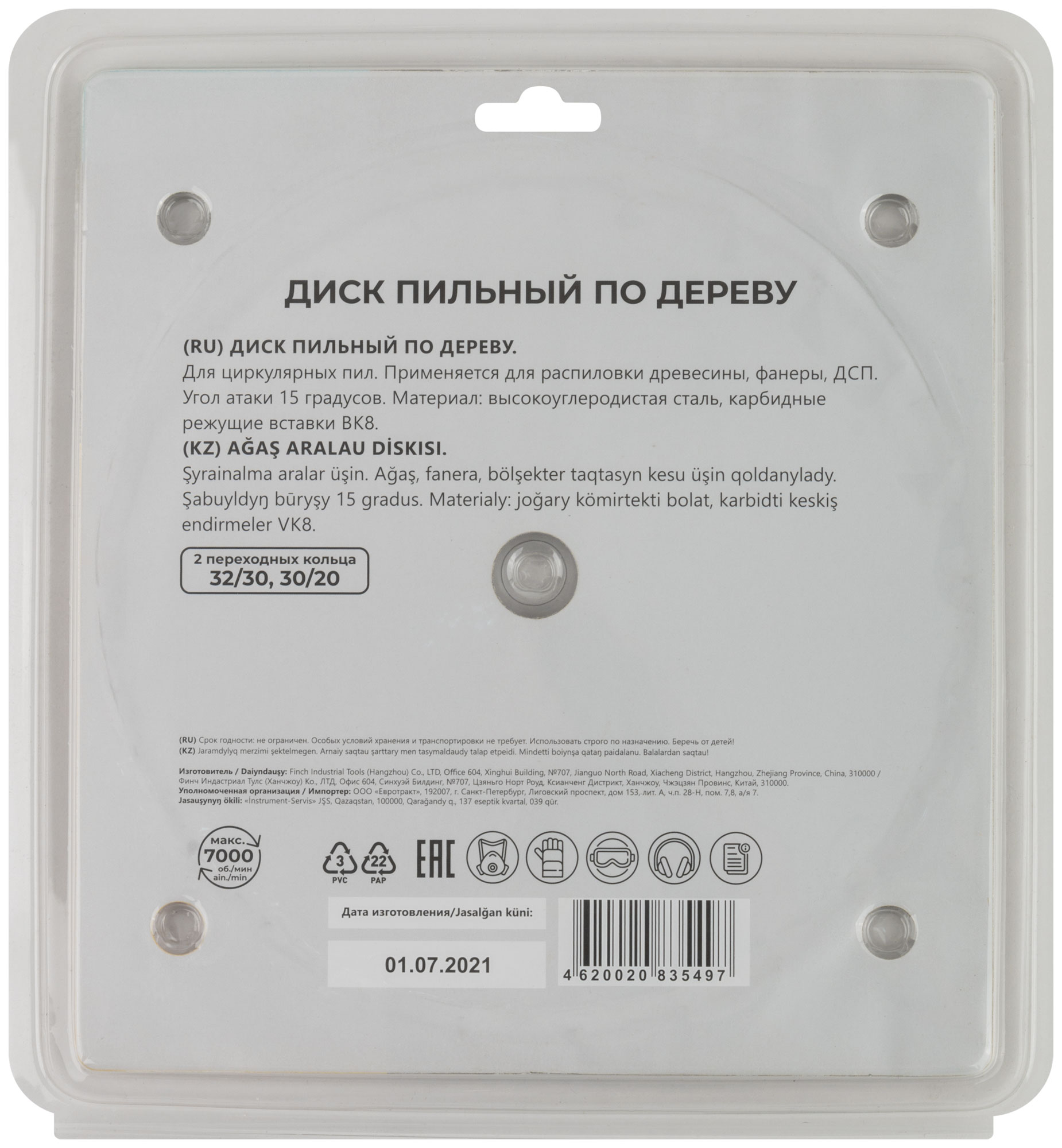 Диск пильный для циркулярных пил по дереву 200 х 32 х 24T + 2 кольца: 32/30 и 30/20 мм