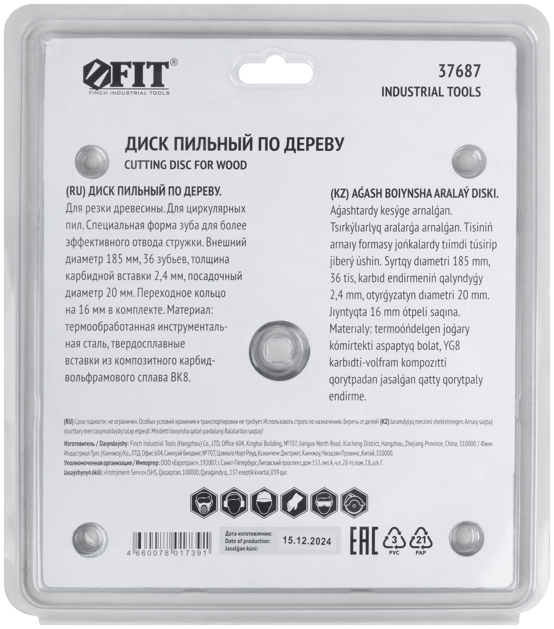 Диск пильный для циркулярных пил по дереву, спец. форма зуба 185 х 20/16 х 36Т
