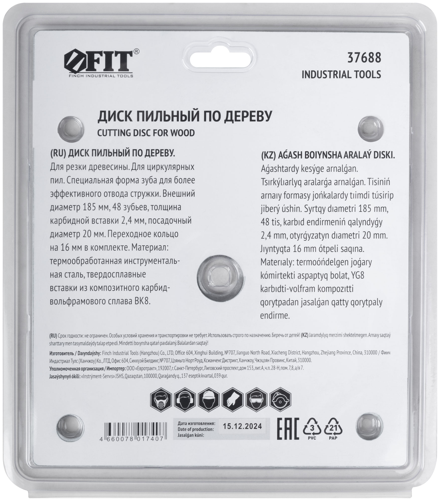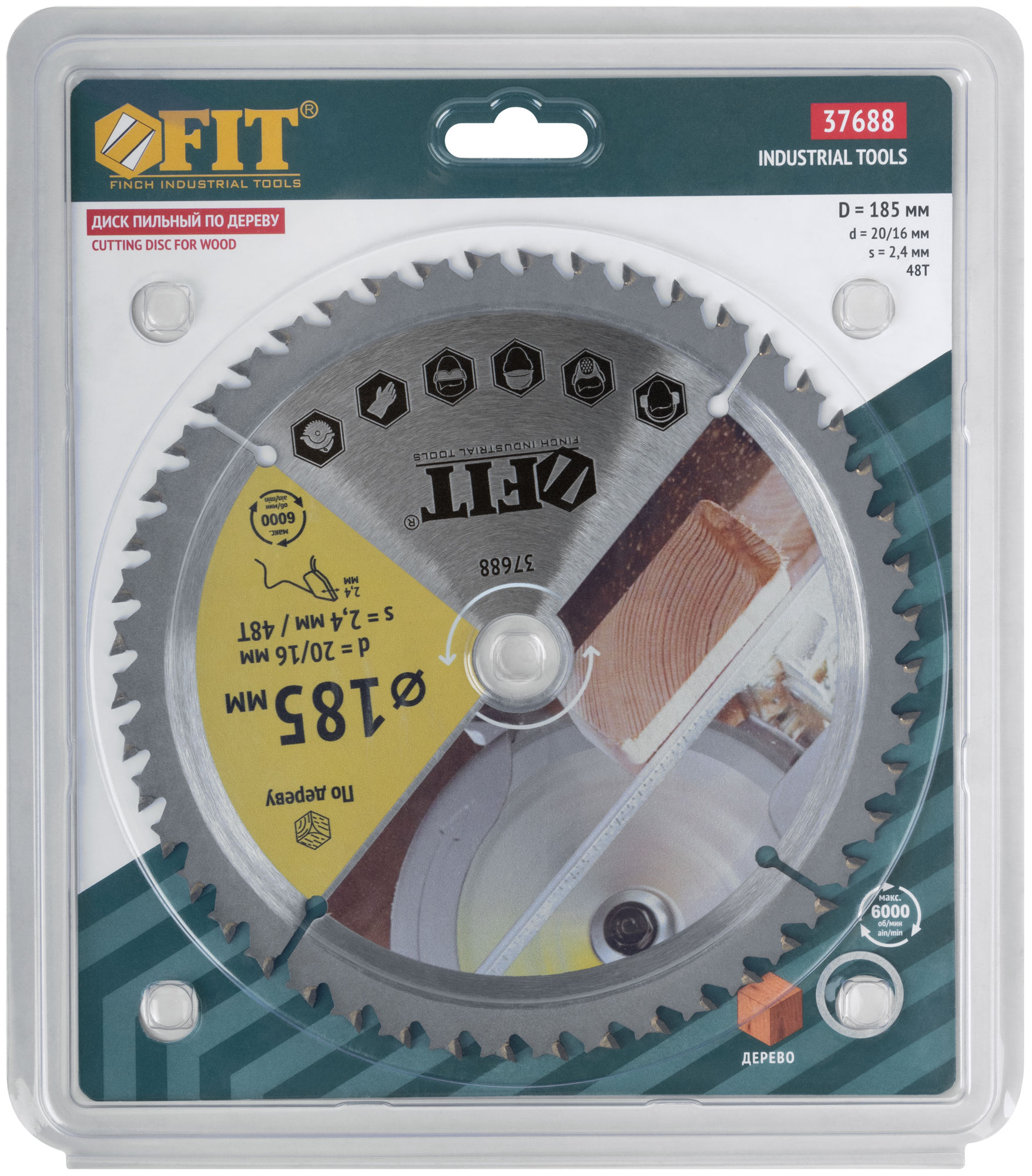 Диск пильный для циркулярных пил по дереву, спец. форма зуба 185 х 20/16 х 48Т